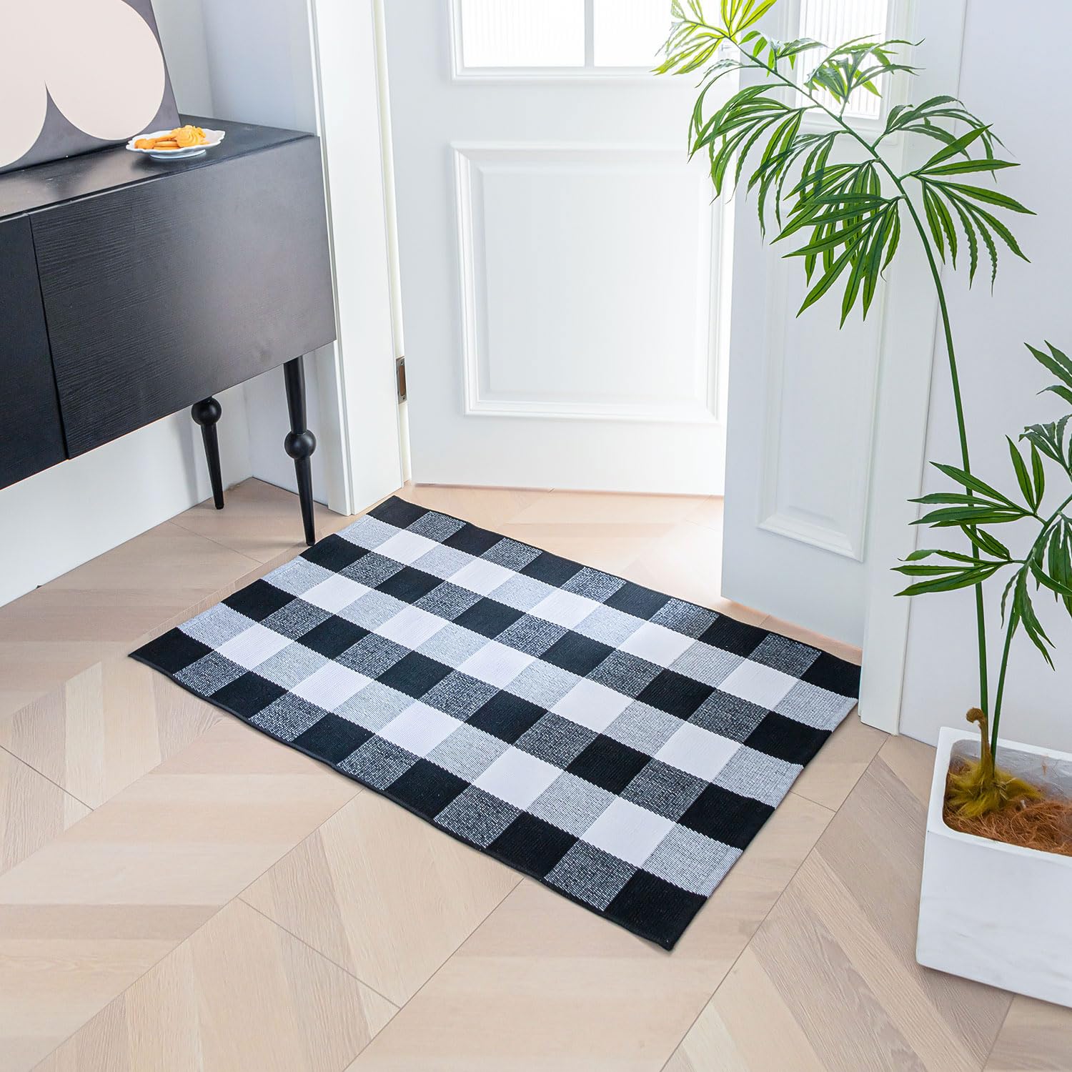Cotton Buffalo Plaid Rugs 27.5"x43"(2.3'x3.6'),Complete Home Rug Hand-Woven, Indoor/Outdoor Use,Black & White Checkered Rug-Layered Door Mats, Washable for Front Porch, Kitchen, Farmhouse