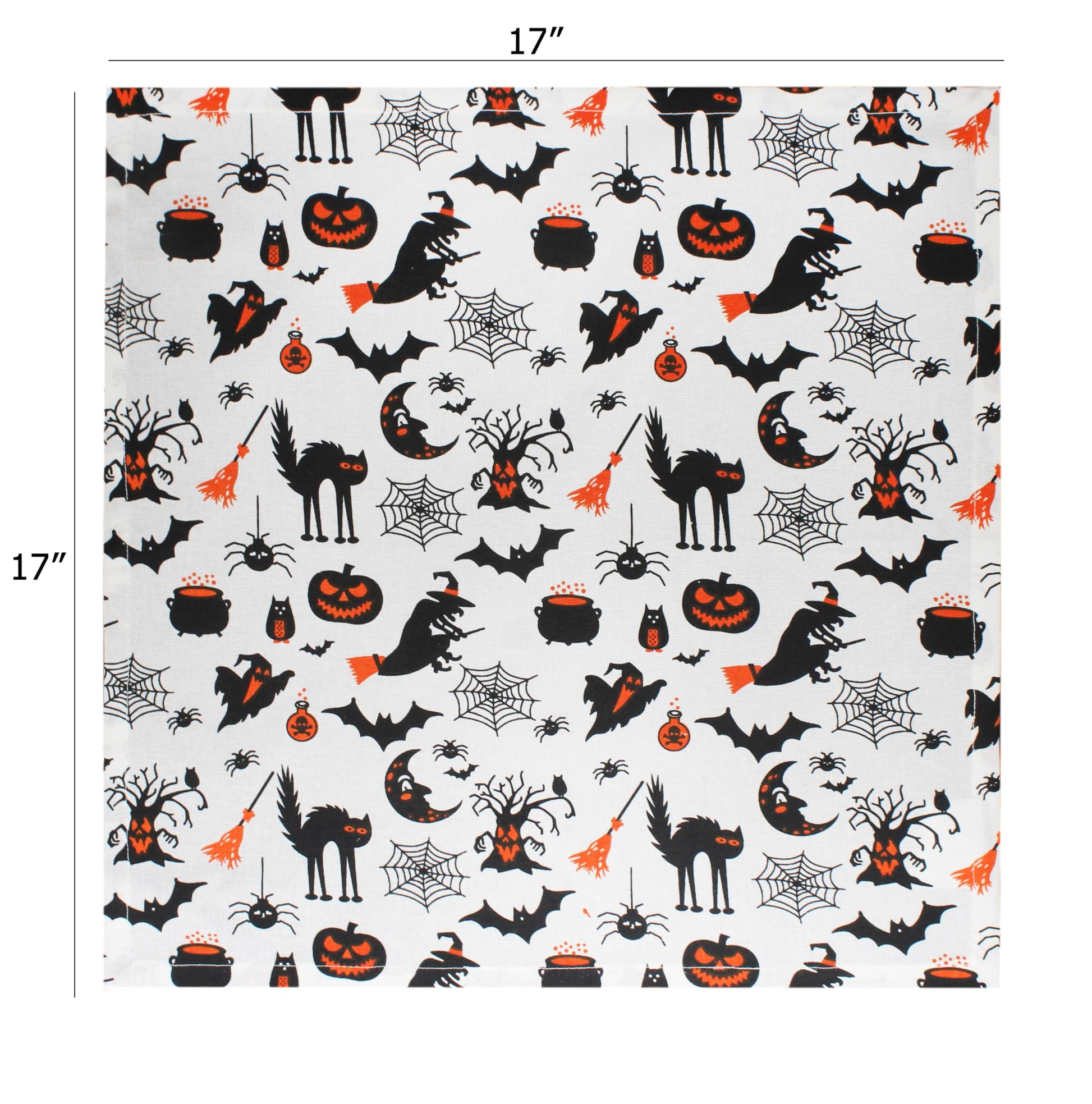 COTTON CRAFT Halloween Cloth Napkins - Spooky Hocus Pocus Dinner Napkins - Set of 12 Pure Cotton Reusable Washable Napkin - Halloween Decorations - Halloween Party Décor - 17 x 17 - Black White Orange