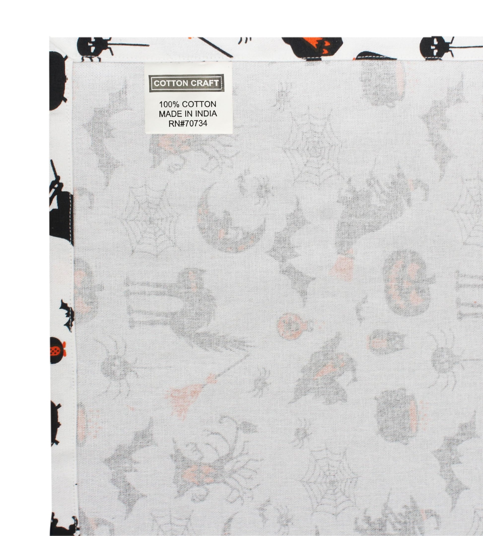 • Set Contents: Includes twelve (12) COTTON CRAFT Halloween Dinner Napkins. This striking napkin, measuring 17x17 inches, features spider webs, witches, bats, Jack o lanterns, and other captivating Halloween motifs that perfectly capture the spooky spirit of the season.