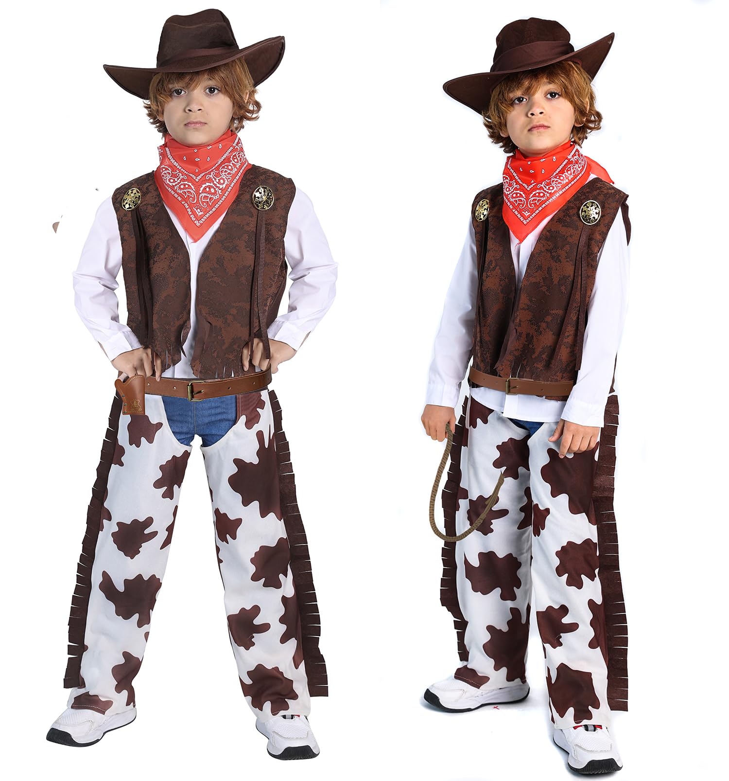 Cowboy Costume for Boys 5pcs Set Kids Dress Up Birthday Halloween Party Cosplay 8-10 Years