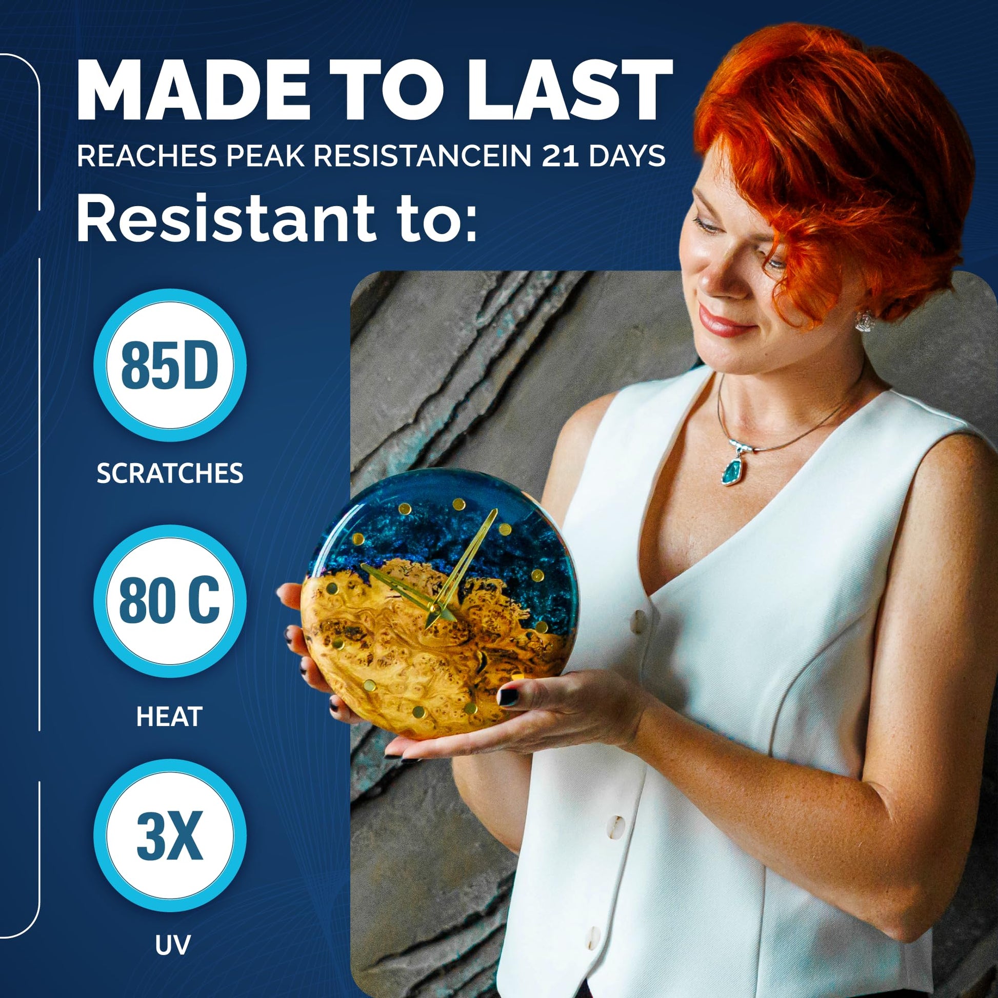 • QUICK CURE & HEAT RESISTANT - Our crystal epoxy resin cures to a rock-hard, scratch-resistant strength in just 48 hours, with heat resistance up to 176 F. It guarantees a crystal clear, glassy smooth finish that lasts for years without cracking or damage from heat.