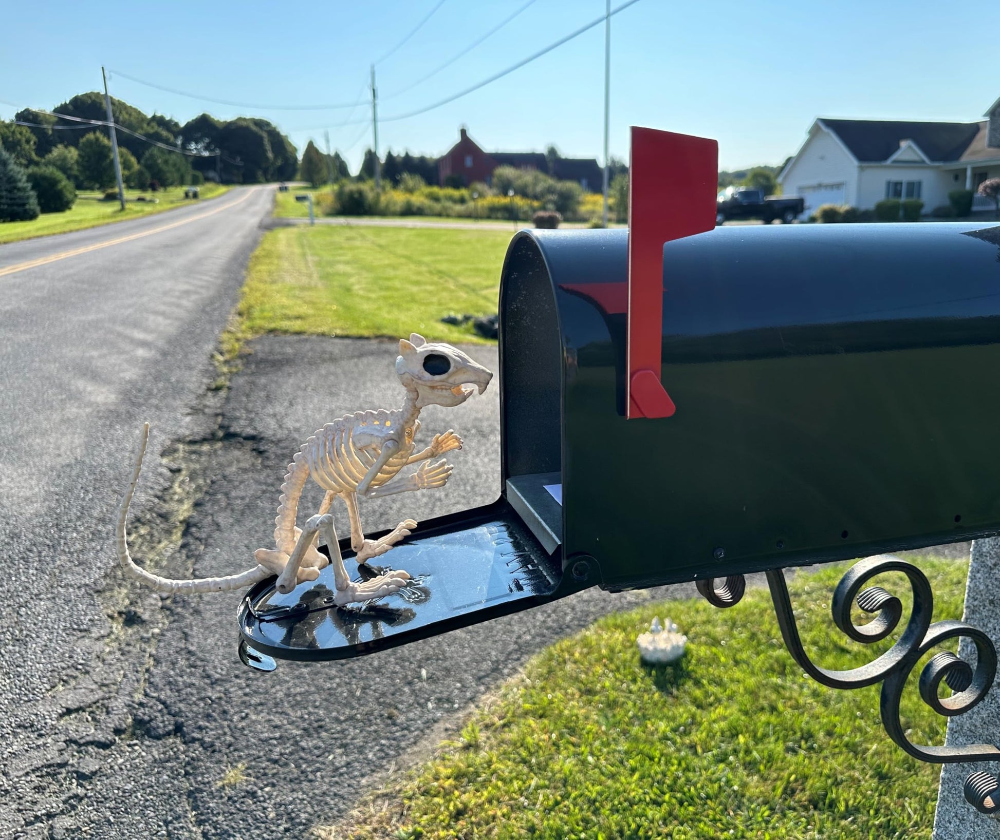 Details: The Crazy Bonez Skeleton Squirrel measures 7' tall with 8' long bendable tail. This life size squirrel figurine features realistic molded bones and is made of durable all-weather plastic for indoor or outdoor use. Perfect for Halloween displays and year round as a decorative garden figurine. Place in trees or near bird feeders for a fun and unique outdoor decor display. Part of the original Crazy Bonez Skeleton line. Add to your collection today!