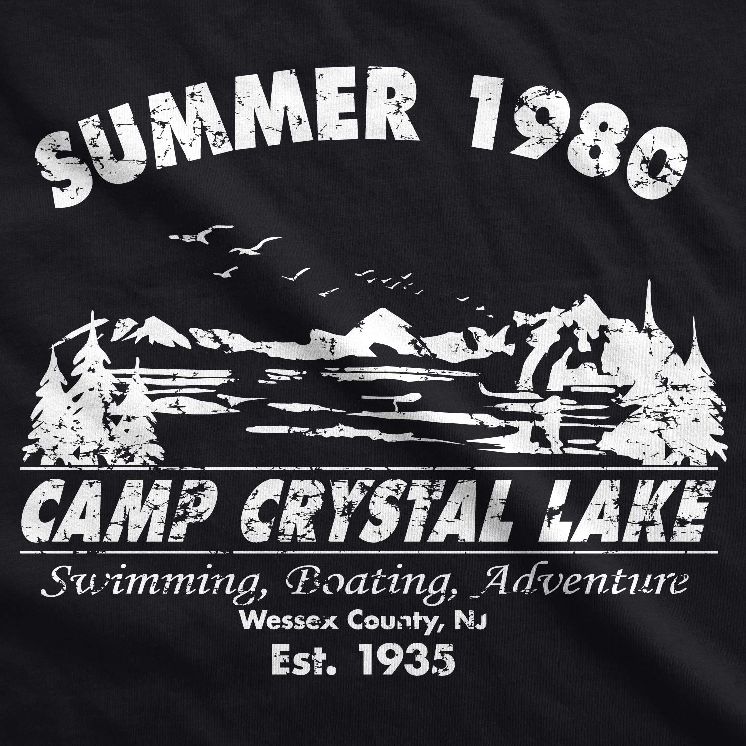 Crazy Dog Men's T Shirt Camp Crystal Lake 1980 Spooky Halloween Horror Movie Slasher Jason Shirt Flick Film Buff 80's Movie Graphic Novelty Tee (Heather Black) - L