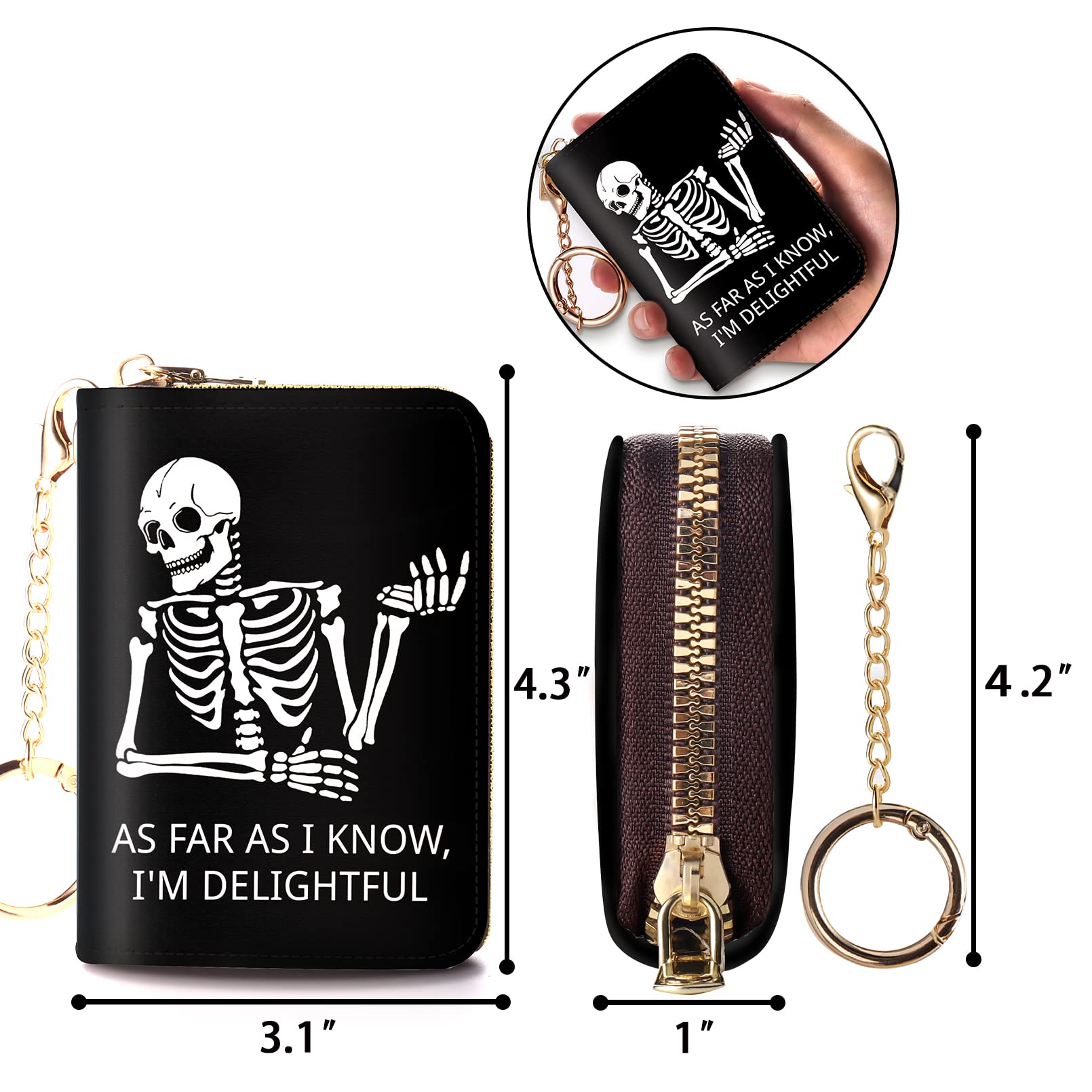 • Express your individuality with our credit card holder that featuring fun skull pattern: As far as i know, I'm delightful. Complement your unique style in a fashionable way with cute small card wallet