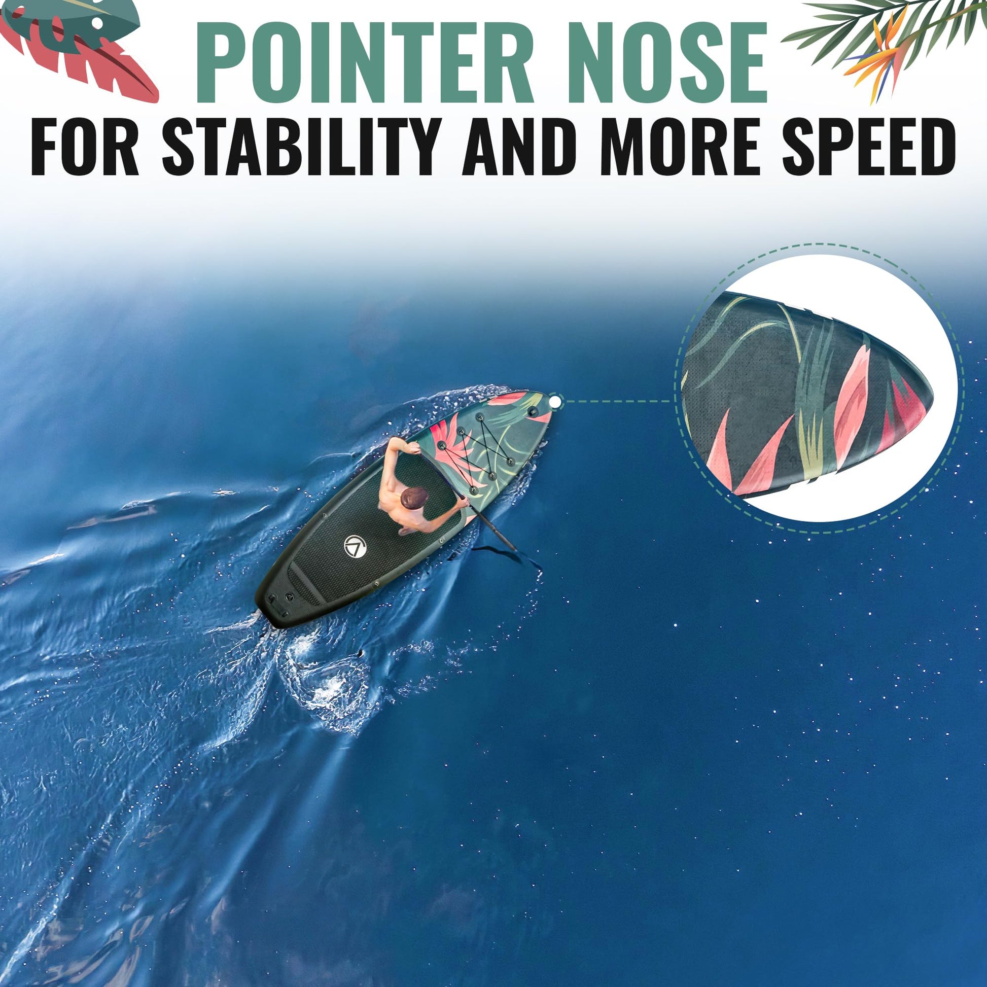 • Updates: The 911 floral edition is our fastest board yet. It has a special step on the back for quick turning. It has an agressive front shape to pick up speed quicker. Wider for extra stability (33”), added 4 D-rings for a seat, camera mount, added a floating paddle, and a large dry proof bag. One of the lightest and most stable paddle boards on the market at only 18lbs, with a weight capacity of 320lbs. The full kit includes everything you need to get out there!