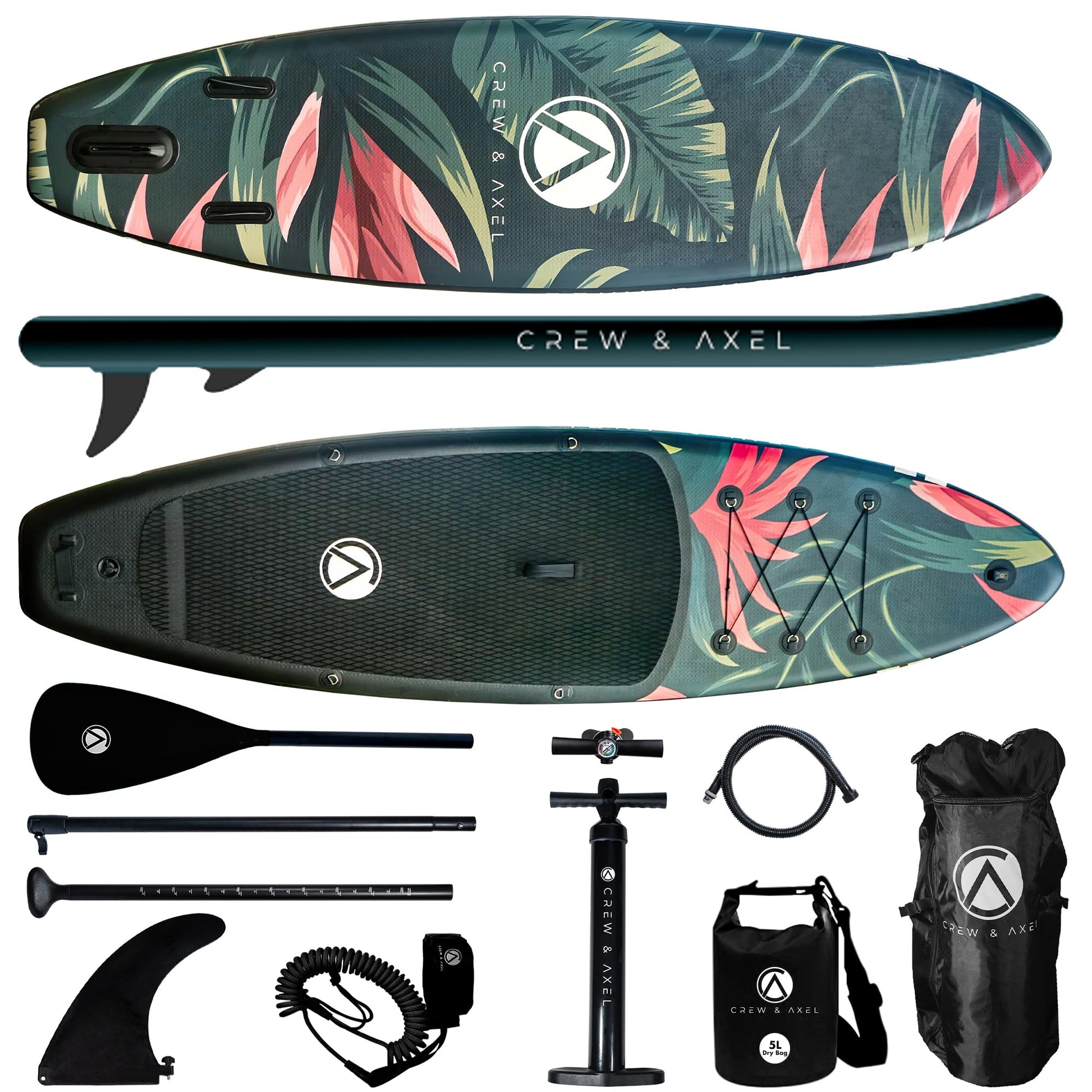 Crew Axel Inflatable Paddle Board 10’33’6” Extra Wide & Lightweight (18lb) Paddle Board – Premium SUP Set Includes 2 Bags, Floating Paddle, Camera Mount, 3 Fins, Dual Pump Kit (Floral 911)