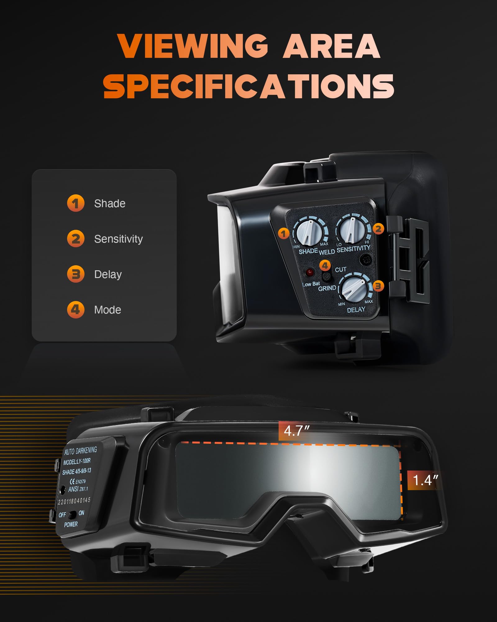 • Long-Lasting Battery Power: Powered by a reliable CR2450 lithium battery, these auto-darkening welding goggles deliver consistent performance and extended runtime. The replaceable battery ensures you stay protected through long jobs without interruption