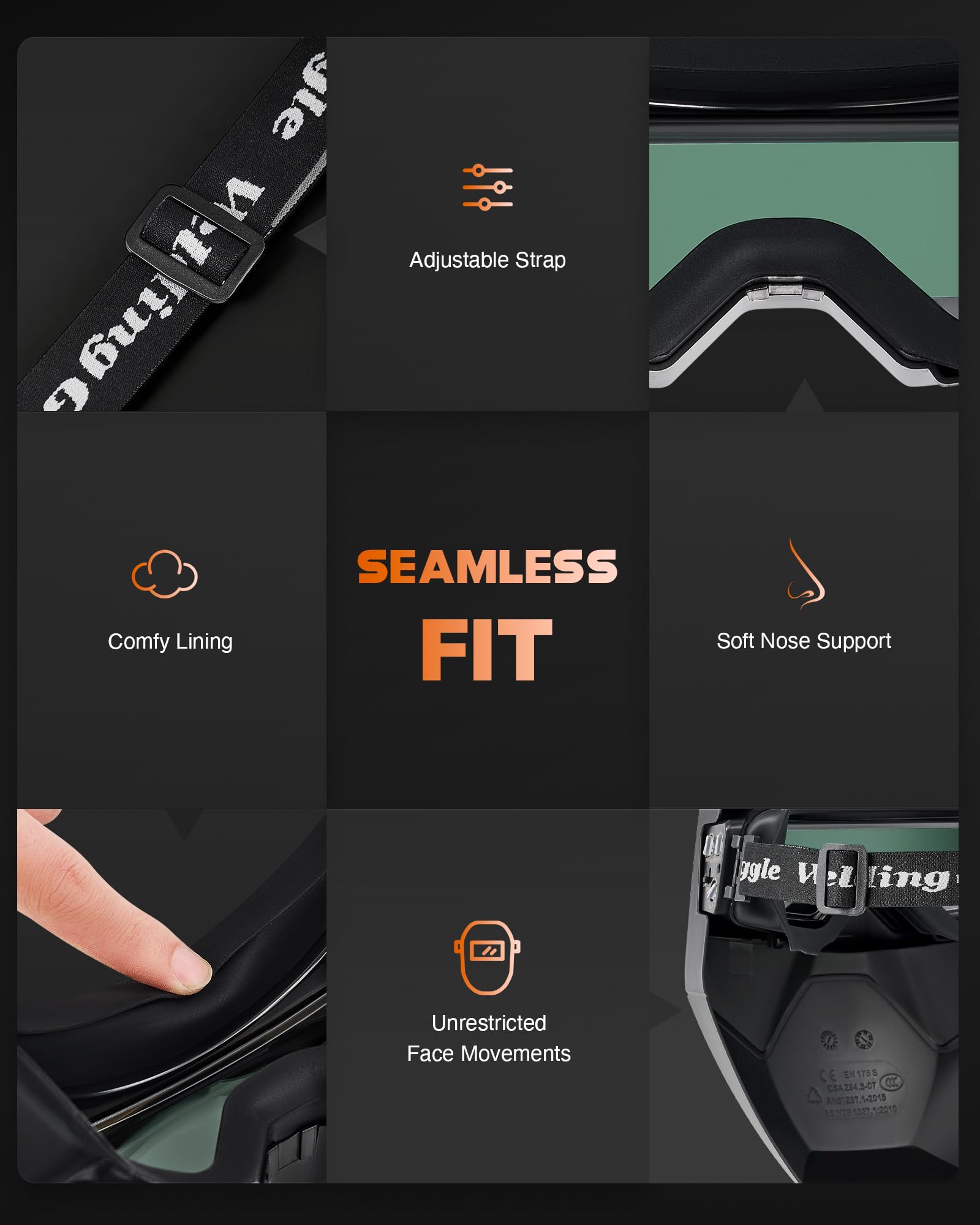 • WIDE APPLICATION: This self-tinting welding goggles is perfect for arc, TIG, and MIG welding and also offers cutting and grinding modes to more easily accommodate lighter shading as you work