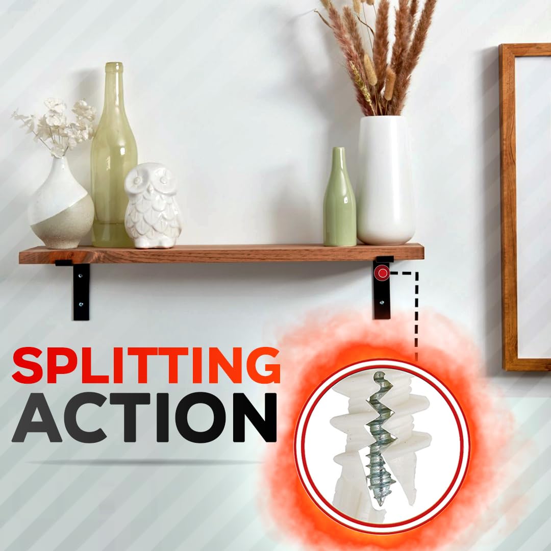 • EASY TO USE & DURABLE: Once the screw anchors are in the drywall, the anchors will wedge tightly against the it. The anchor cannot damage the wall. Even with high controlled pressure & torque the anchor will not split. These plastic anchors can easily be removed can be reuse.