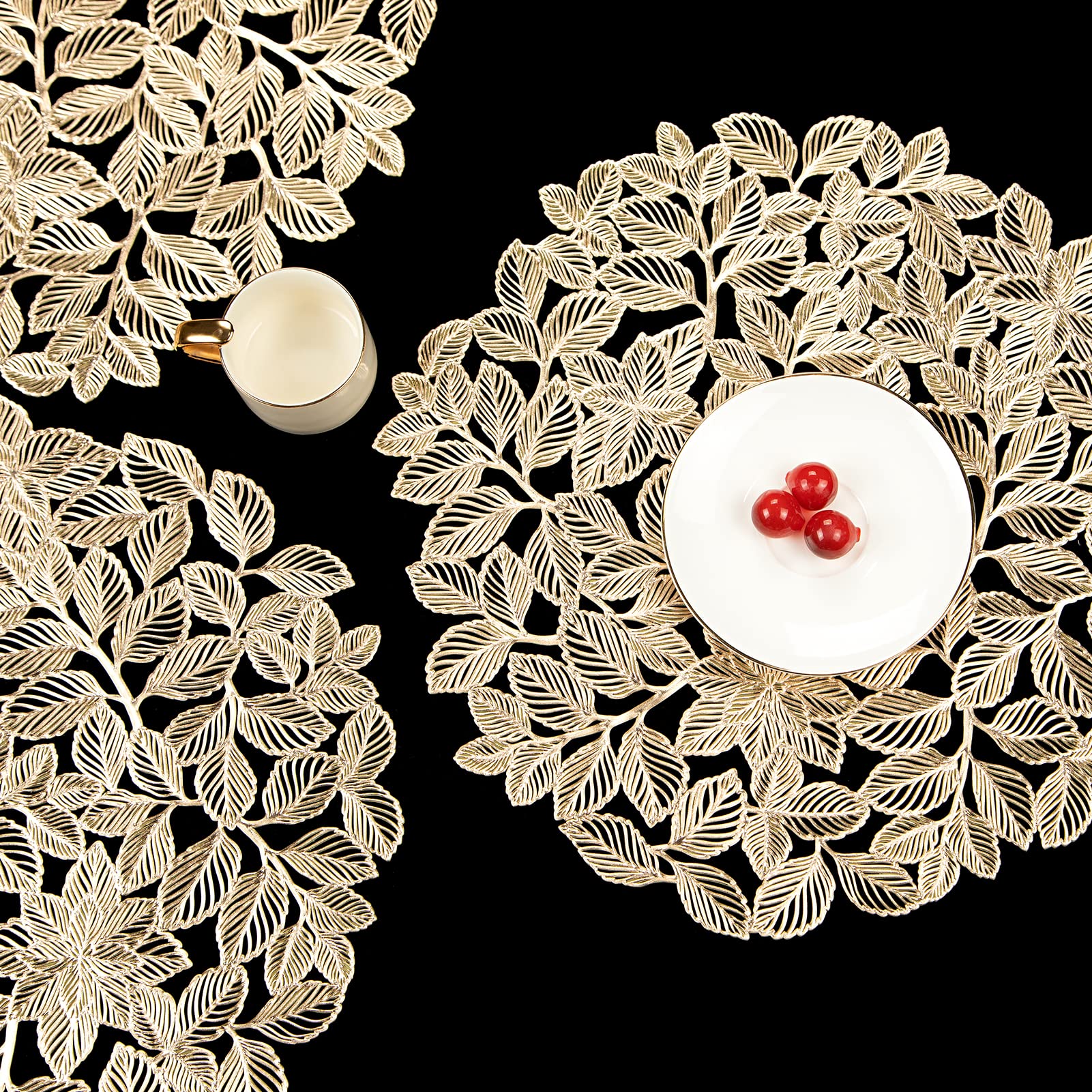 • Design:Hollow out leaves placemats,Stylish gold metallic placemats add a glamorous finishing touch to your table decor.especially for your parties,wedding receptions,birthday party dinner and so on.
