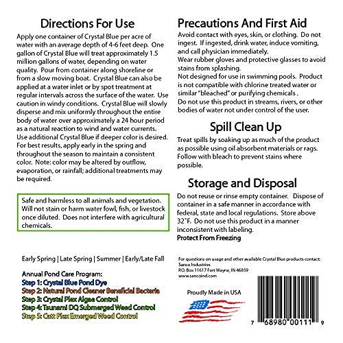 Crystal Blue Lake and Pond Dye - 1 Gallon - Royal Blue Color Treats up to 1 Acre - Clean, Clear & Crystal Blue Water - Environmentally Friendly Pond Dye