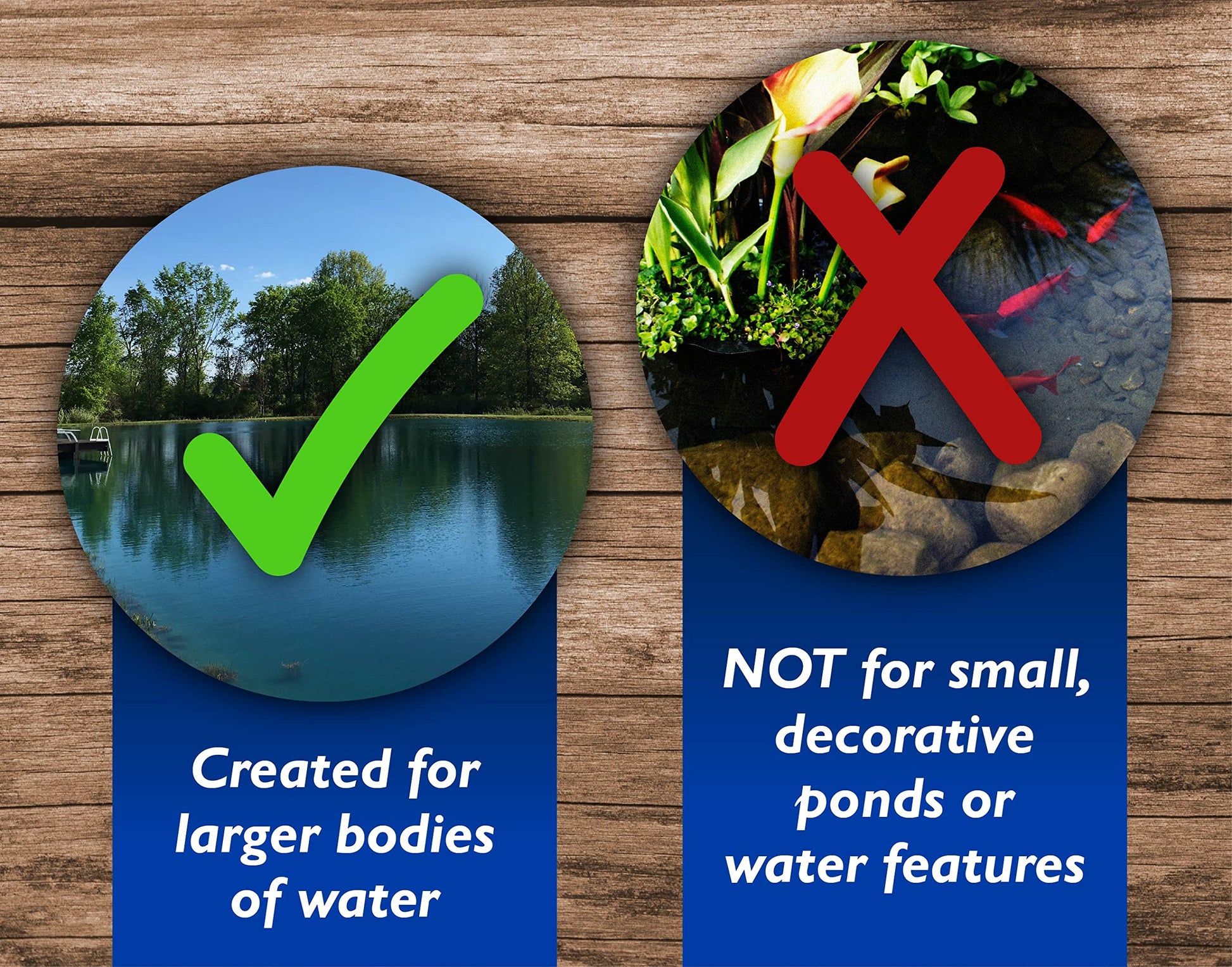 • One gallon of Crystal Blue will treat 1 surface acre with an average depth of 4 - 6 feet deep and is safe for people, pets, fish, swimming, wildlife and irrigation when used as directed.