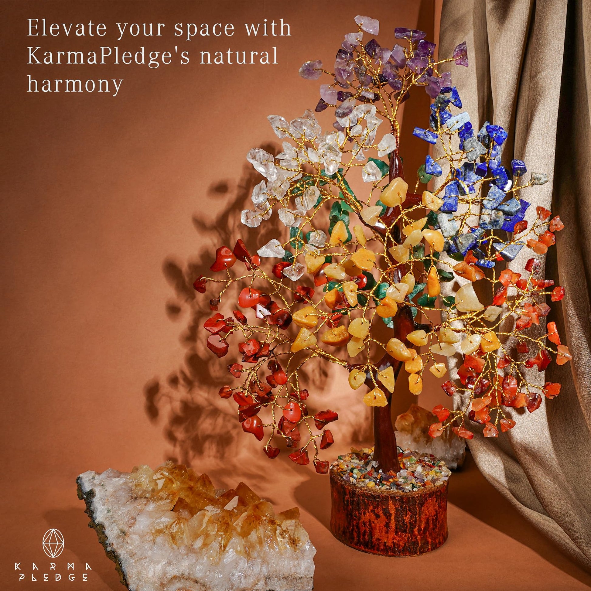 • SPIRITUAL BALANCE: The 7 chakra crystal tree represents the Root Chakra (Red Jasper), Sacral Chakra (Carnelian), Solar Plexus Chakra (Citrine), Heart Chakra (Green Aventurine), Throat Chakra (Lapis Lazuli), Third Eye Chakra (Amethyst), and Crown Chakra (Clear Quartz). These stones are associated with positiveness and can bring luck, wealth, and prosperity.