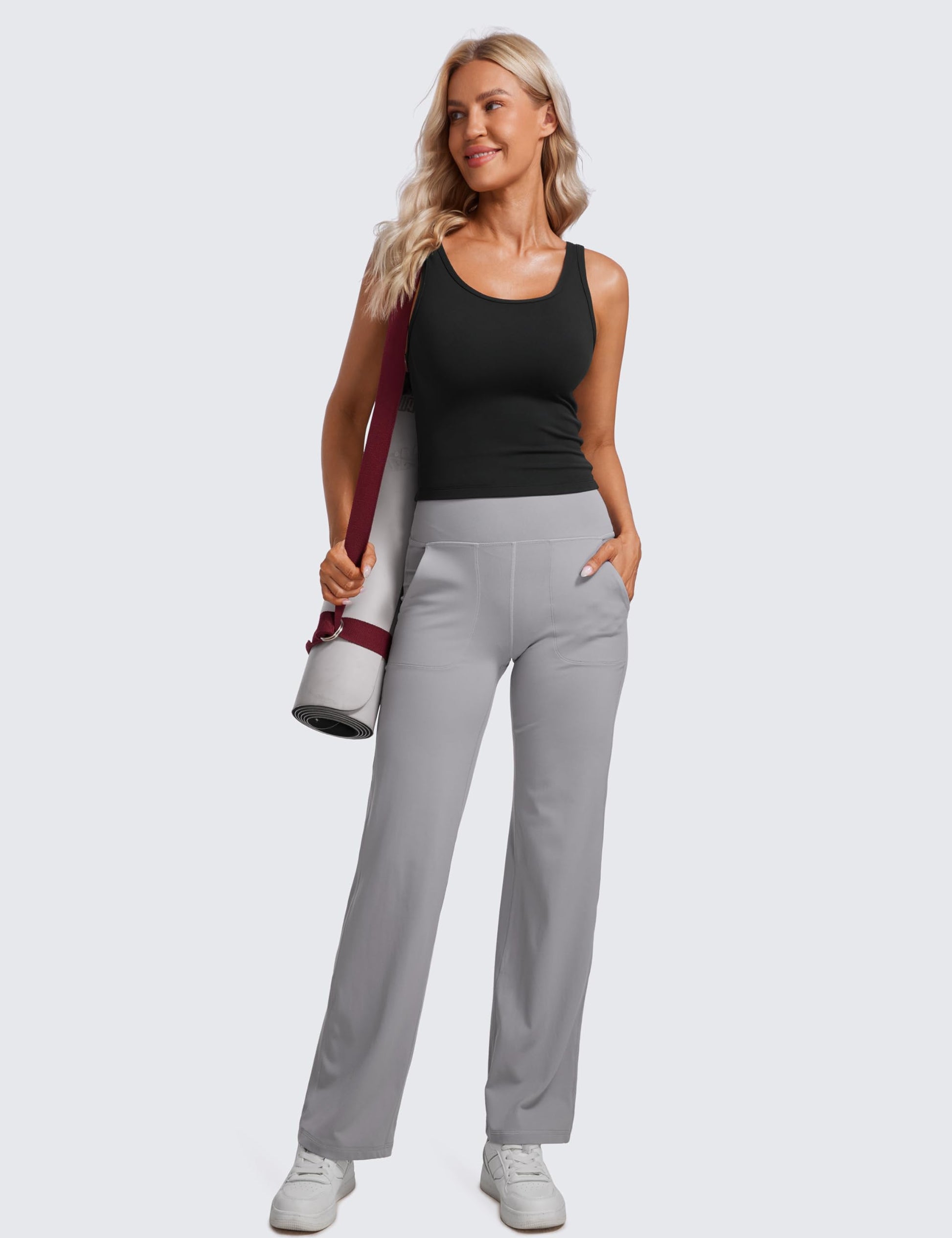 CRZ YOGA Womens Butterluxe Double Lined Workout Tank Tops Scoop Neck Racerback Cropped Casual Sleeveless Shirt Black Small