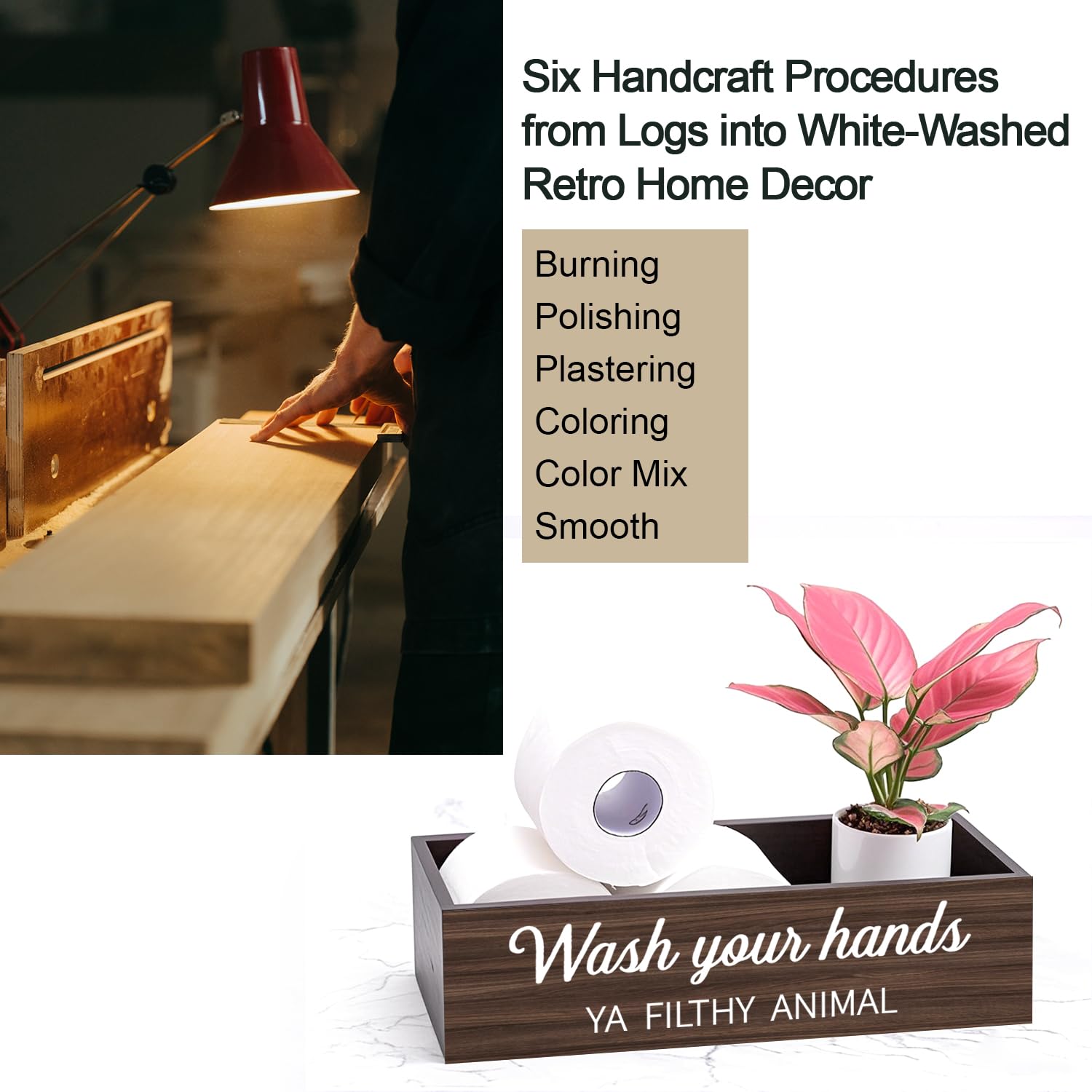 • RUSTIC BATHROOM DECOR BOX: Our toilet paper box with a country wooden look can bring a classic and natural feel to your bathroom; Use this farmhouse décor box to place aromatherapy and vases to create an elegant and vintage scene in the bathroom