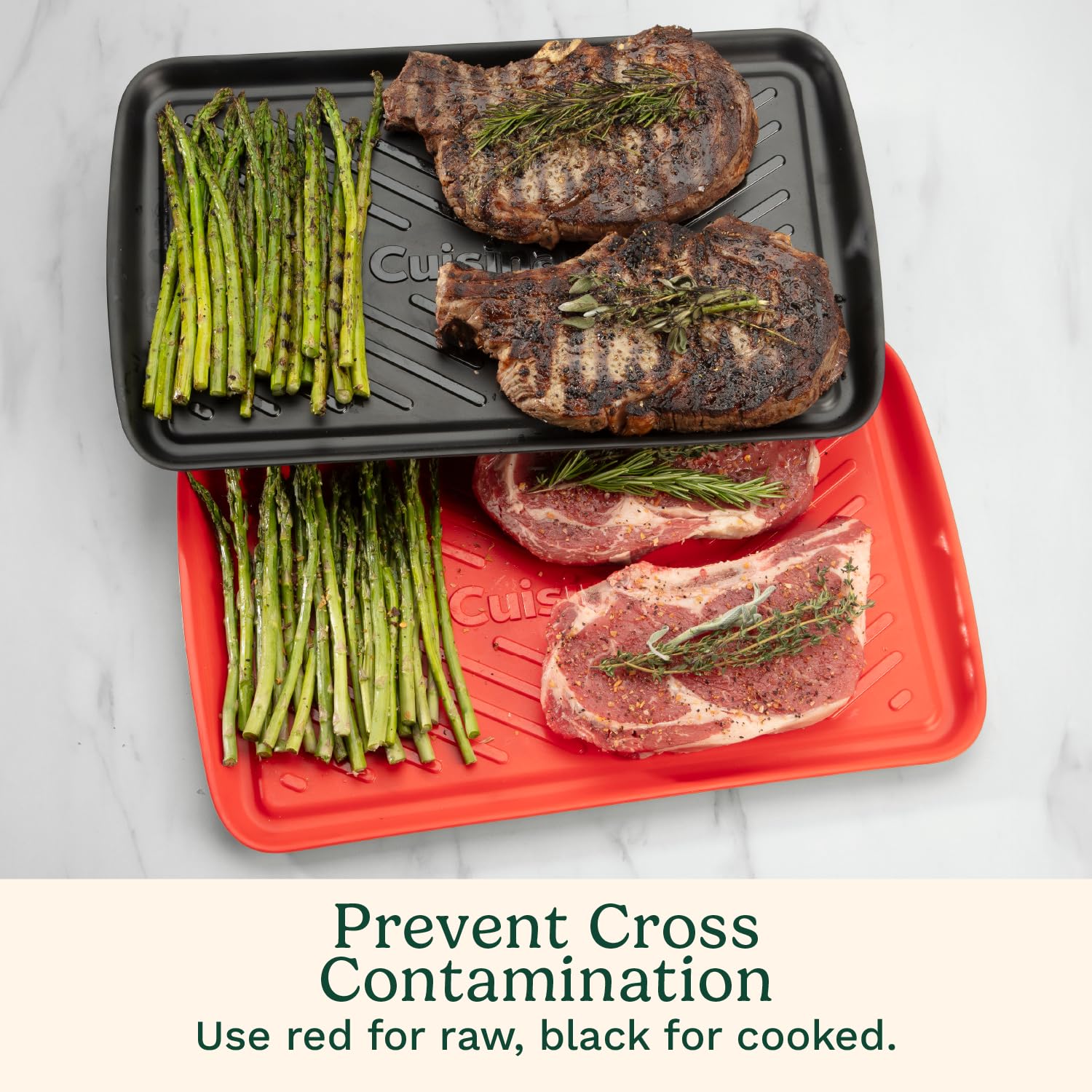 Cuisinart Grilling Prep & Serve Trays, 17x10.5 inch BBQ Tray Safe for Food Handling, 2 Dishwasher Safe Nesting Trays Black & Red, Perfect Grilling Accessories for Cooked & Raw Meat, Fits 6 Burgers