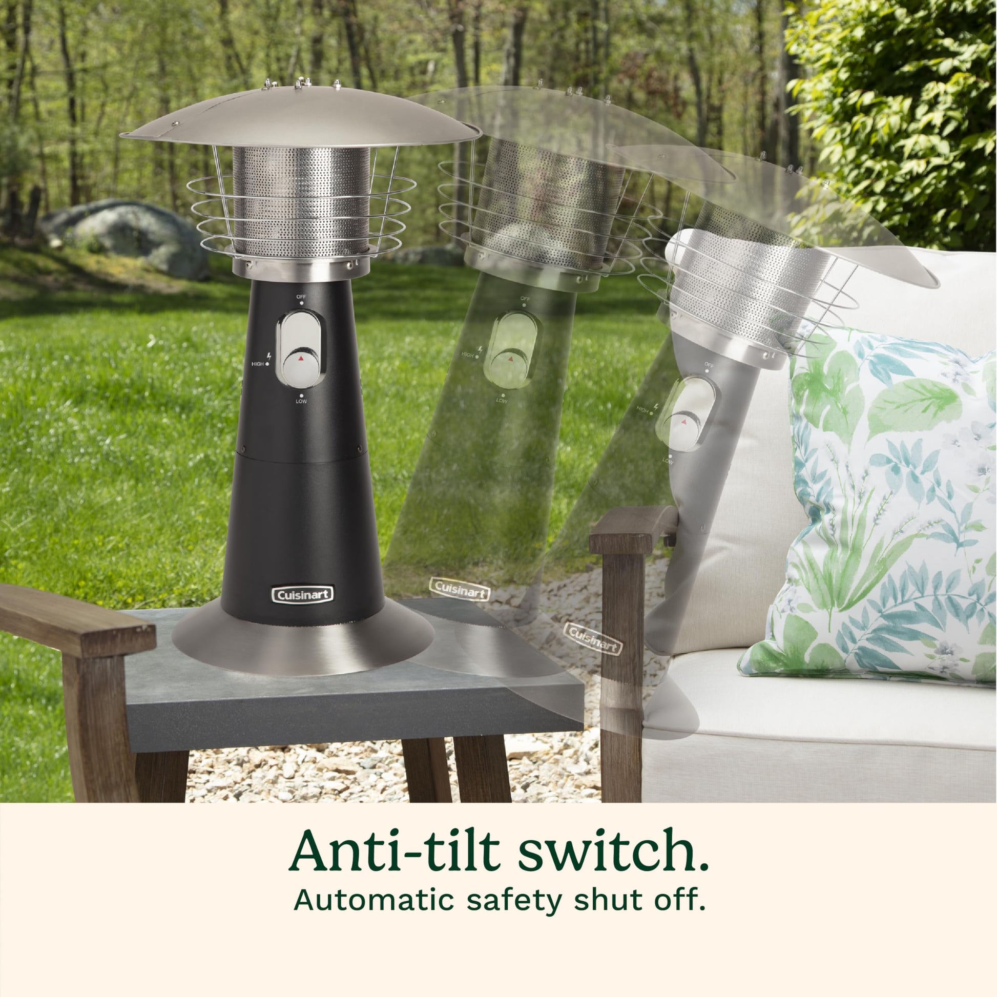 Cuisinart Portable Tabletop Patio Heater, 11,000 BTU Outdoor Propane Heater with Safety Tilt Switch and Adjustable Heat, Burner Screen Guard, 30 sq. Foot Heat Range, Black