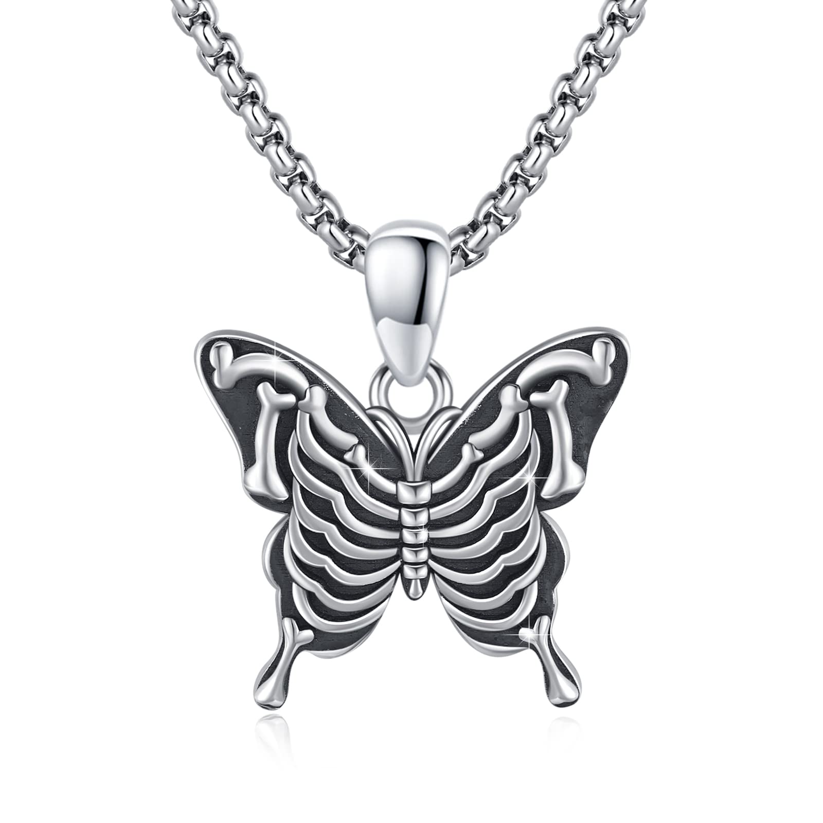 CUOKA MIRACLE Skull Butterfly Necklaces 925 Sterling Silver Gothic Jewelry Butterfly Necklace for Women Skull Butterfly Pendants Necklace Fashion Goth Necklace Halloween Jewelry Gift Hypoallergenic
