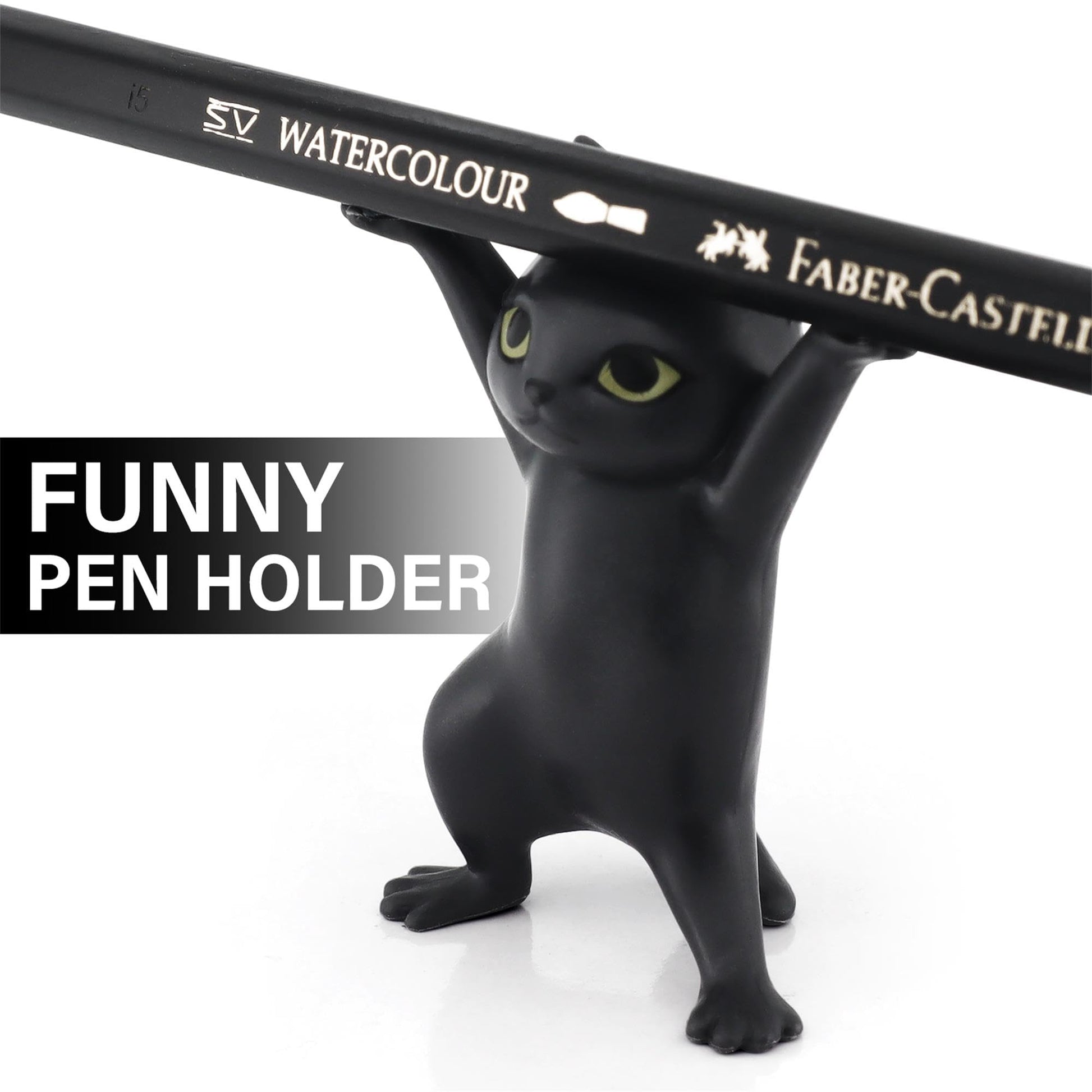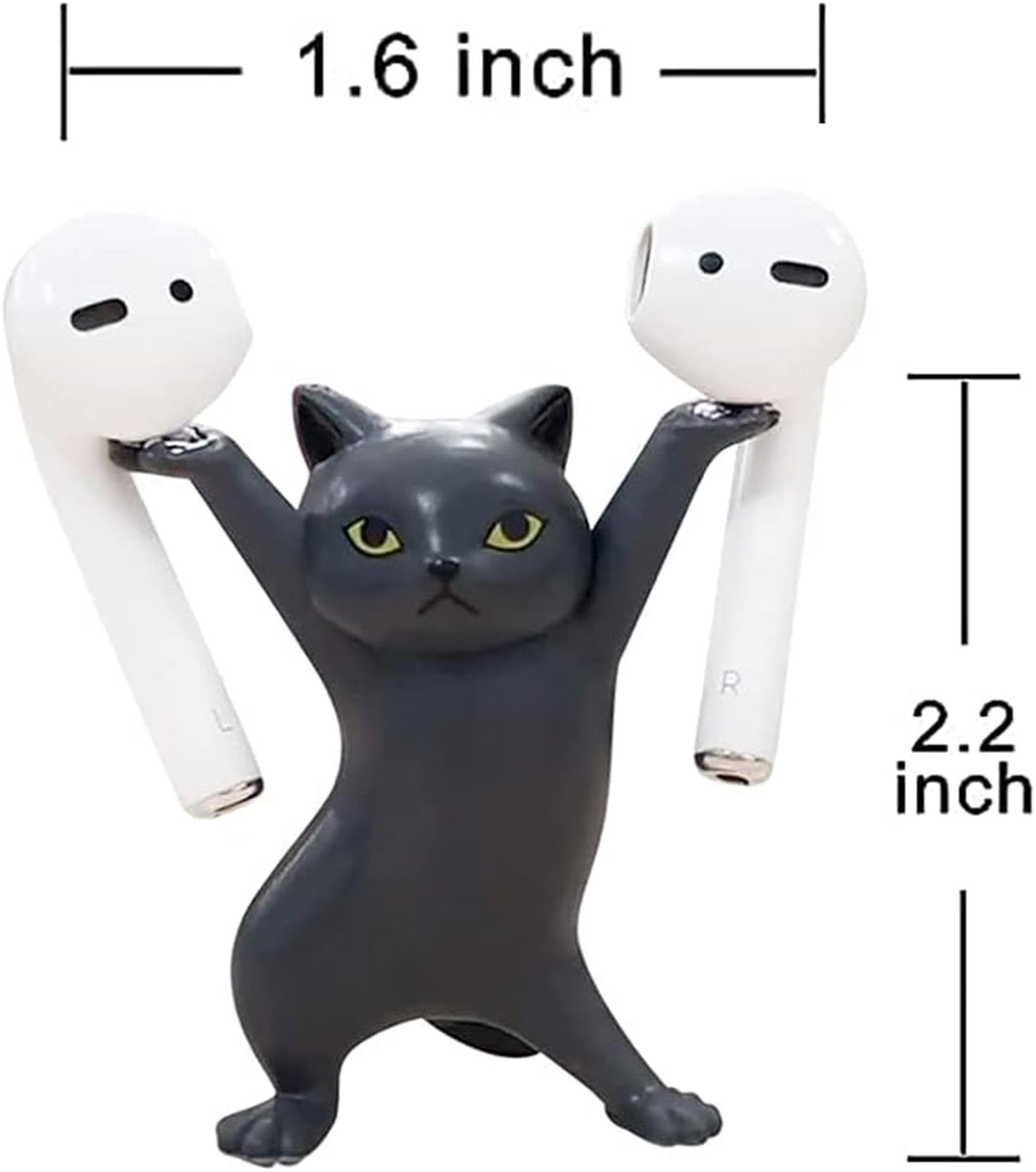 Cute Stuff Home Decor Fun Kitty Decoration for Desk Shelf Magnetic Dance Cat Airpod Holder Headphone Earbuds Holder for Apple AirPods 1& 2 3 Pro, Unique Birthday Bday Gifts Ideas (Black)