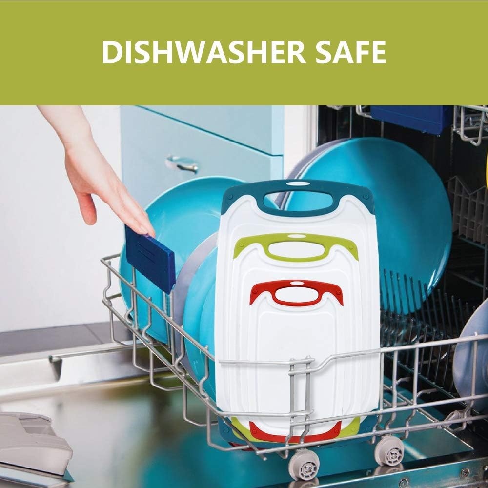 Cutting Boards for Kitchen, Plastic Chopping Board Set of 4 with Non-Slip Feet and Deep Drip Juice Groove, Easy Grip Handle, Dishwasher Safe, Green