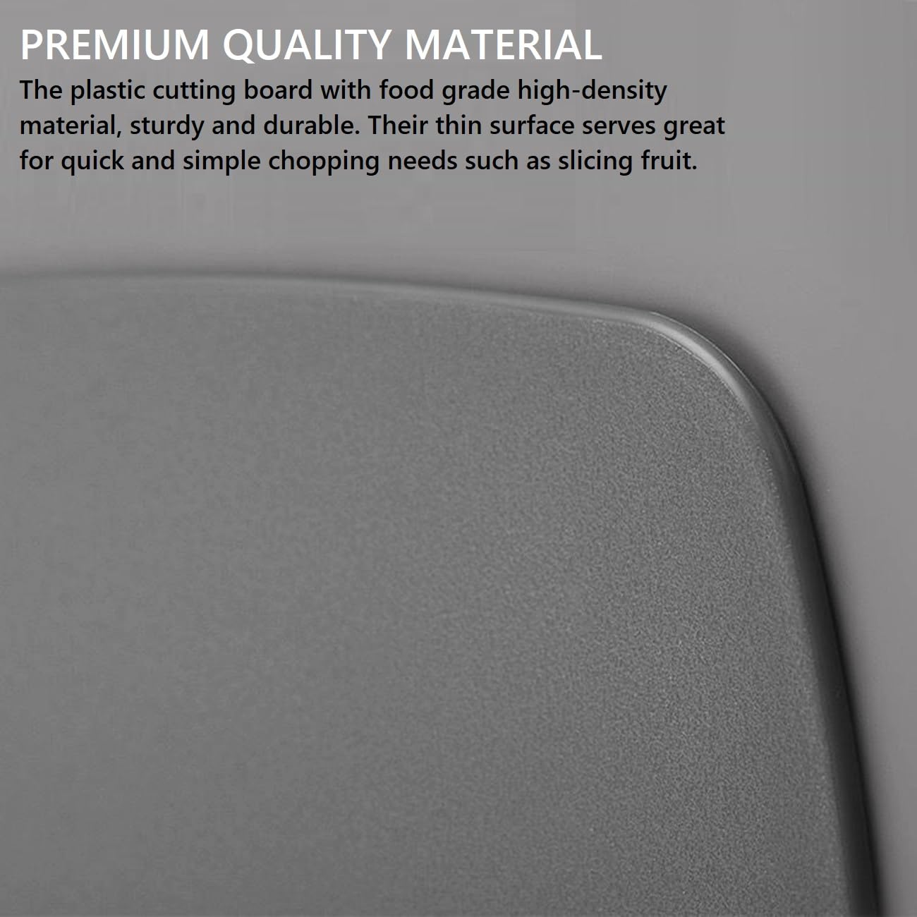 • 【Easy to clean and use】Our rectangular cutting board set is easy to use!Their thin surface serves great for quick and simple chopping needs such as slicing fruit.Simply hand wash your kitchen cutting board with mild soap,to clean.and it is also Dishwasher-safe as needed. Durable plastic sheets won't crack or peel, even after many washes.Take the stress out of meal prep with our plastic cutting boards for kitchen use, and enjoy cooking made simple!