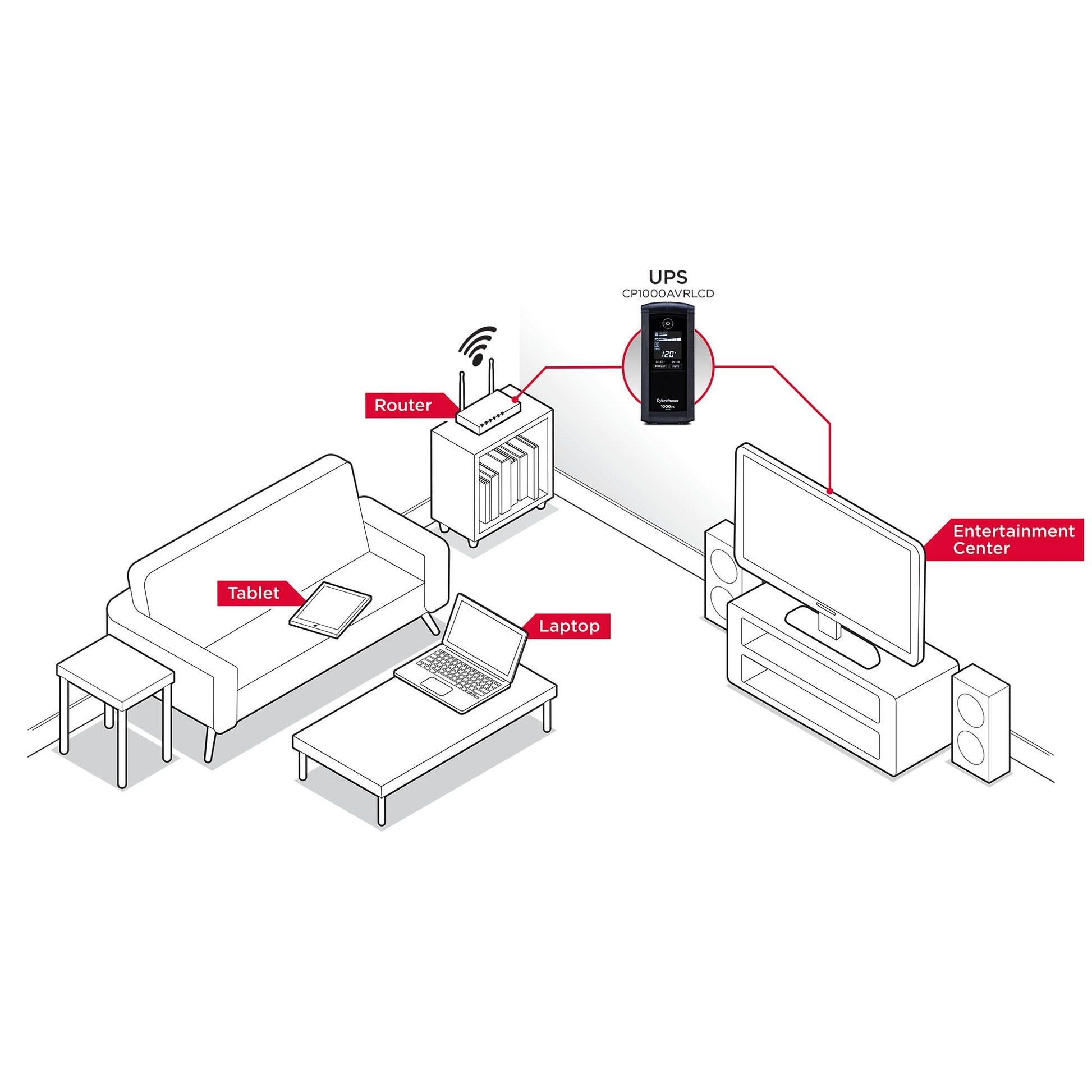 • 1000VA/600W Intelligent LCD Battery Backup Uninterruptible Power Supply (UPS) System uses simulated sine wave output to safeguard workstations, networking devices, and home entertainment equipment