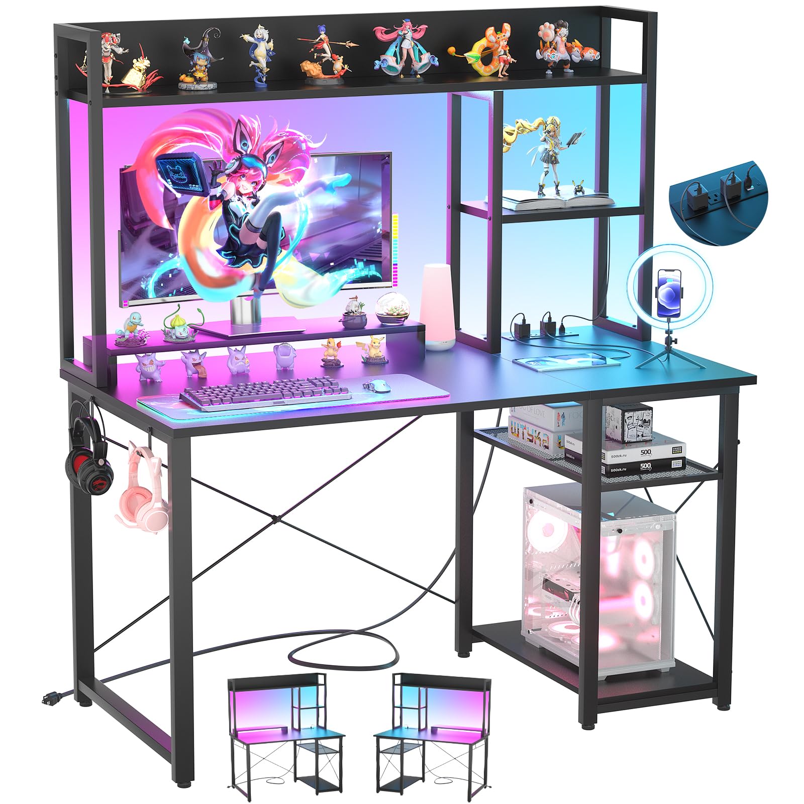 • 【Gaming Desk with Hutch】 Are you annoyed with the messy tabletop now? Our gaming desk with top hutch which is a perfect space to store your books, speakers and decorations. It connects the 5-tier side storage shelves all together increases more infinite storage space and keeps the desktop spacious and tidy. Such strong storage function will make everything arranged very well!