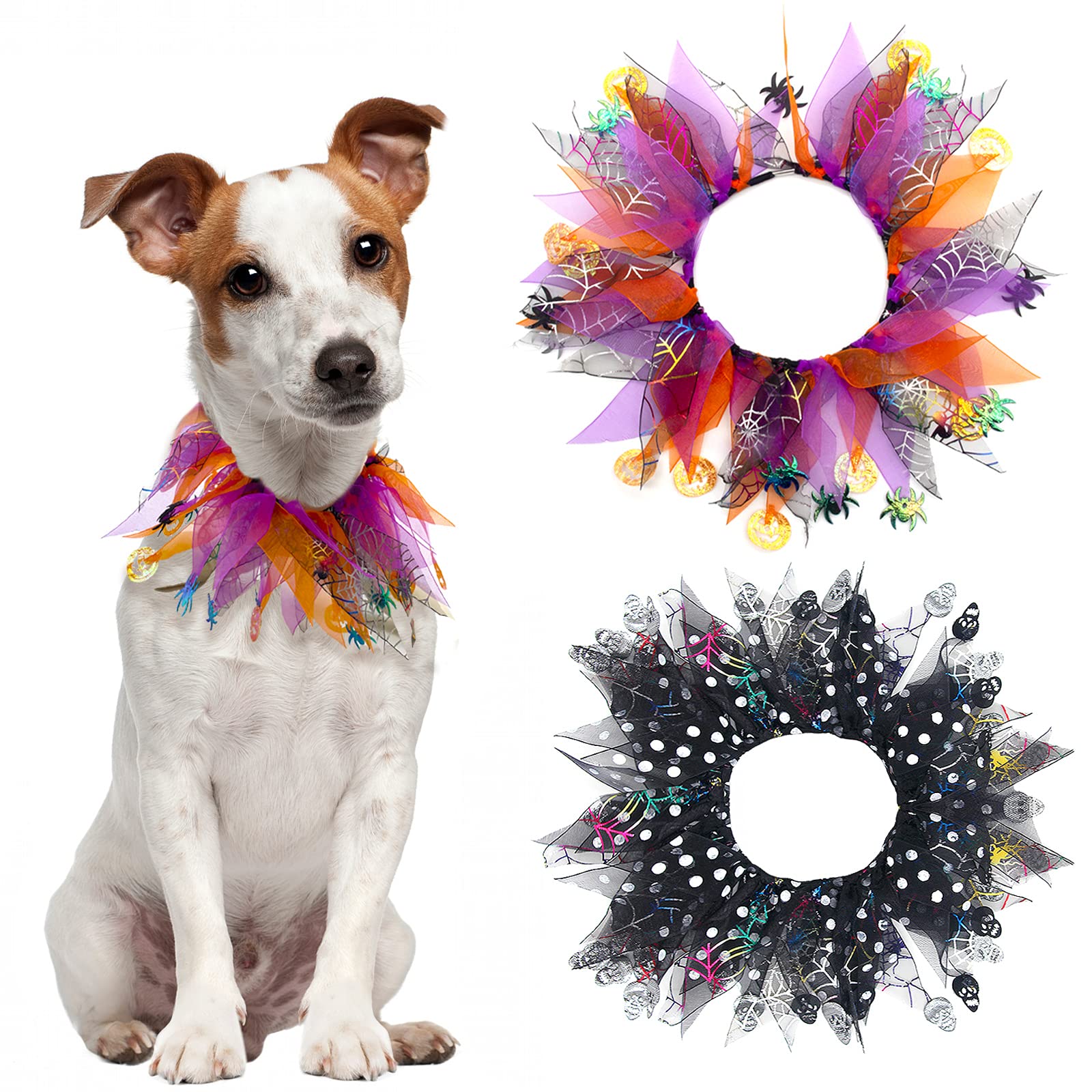 cyeollo 2 Pack Halloween Dog Collar Elastic Fancy Holiday Accessory for Dogs and Cats Pet Costume for Halloween Party