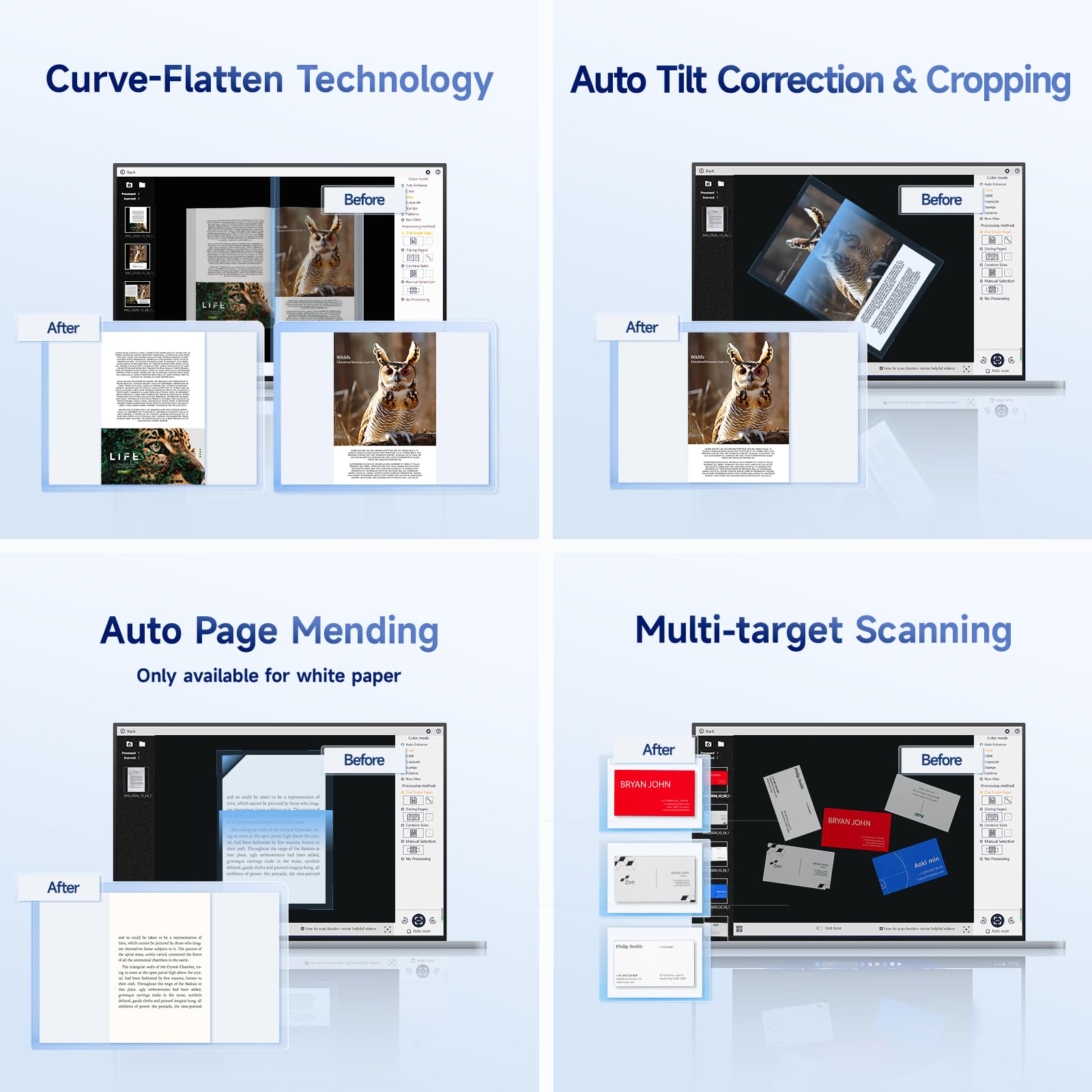 • Design and Speed: Work with Windows XP/7/8/10/11 AND macOS 10.13 or later. Not compatible with Android and iOS. Designed for A3&A4(11.69*16.53 & 8.27*11.75 inch) document, any objects smaller than A3 size can be scanned with Ultra-fast scanning speed, about 1 second per page. Perfect device to scan FLAT papers