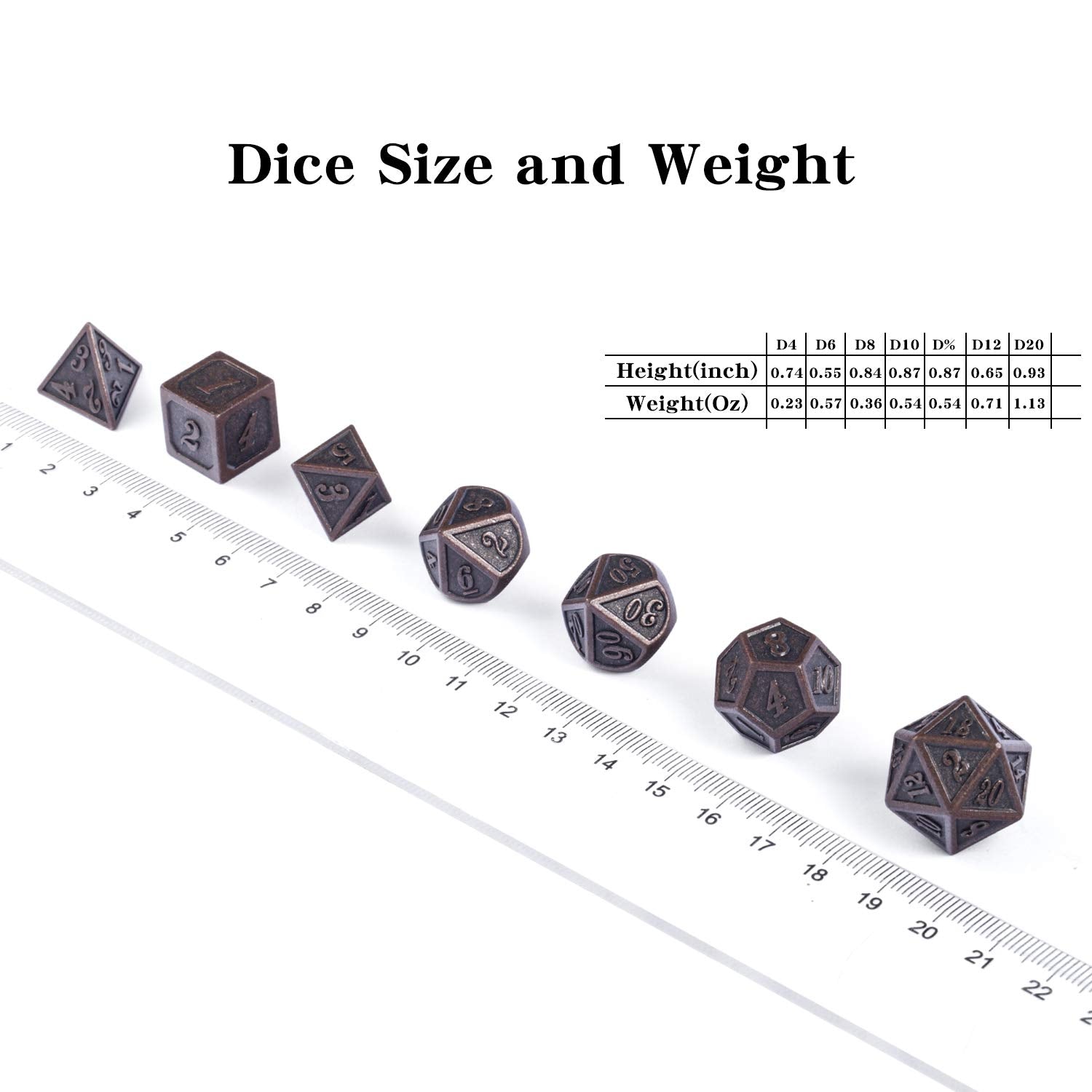 • DND Metal Dice Set: One set dice total 7 pcs including D4, D6, D8, D10, D12, D20 and D%.
