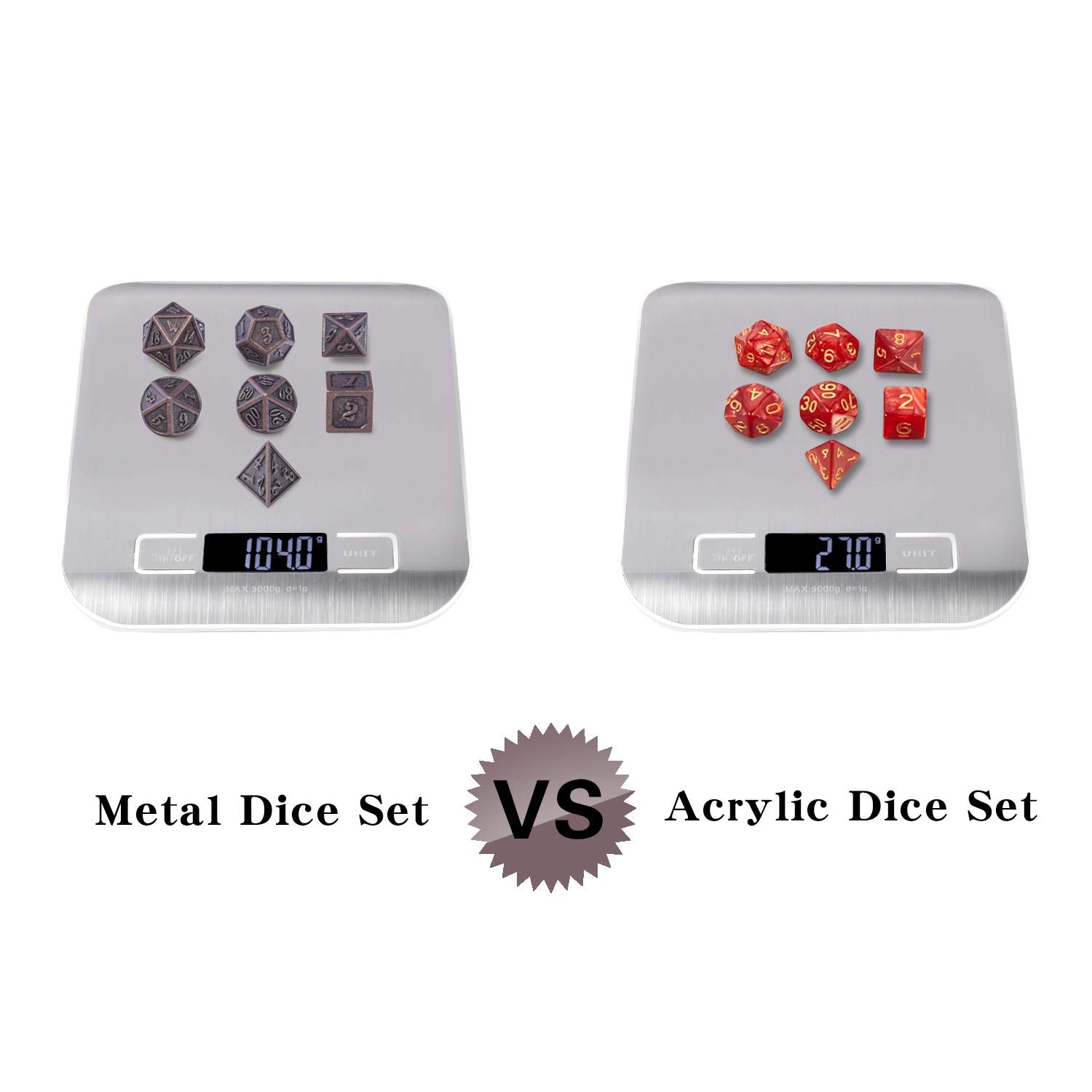 • DND Metal Dice Set: One set dice total 7 pcs including D4, D6, D8, D10, D12, D20 and D%.