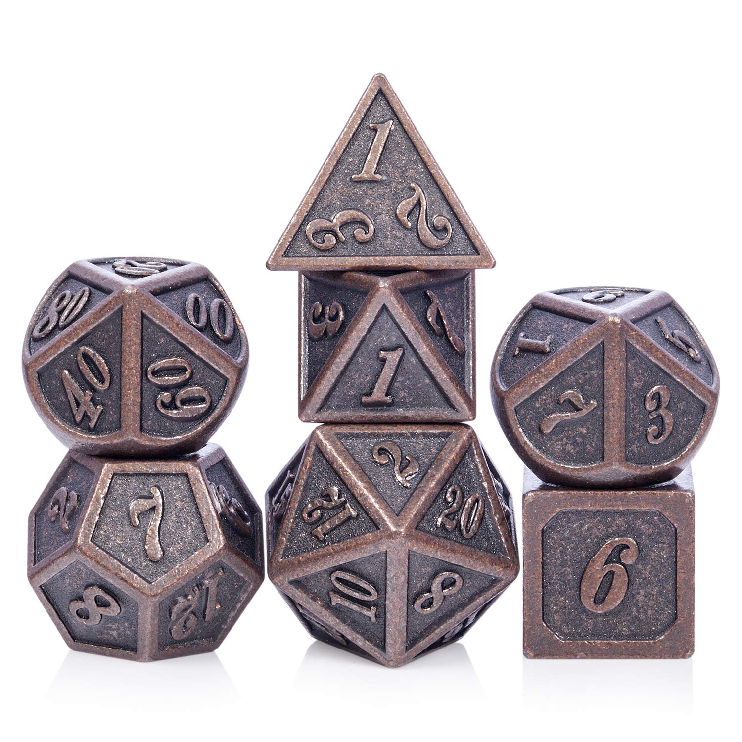 D&D Metal Dice Set, DNDND 7PCS Metallic Ancient Copper Dice with Metal Case for DND Dungeons and Dragons Table Games Roly Playing Rolling