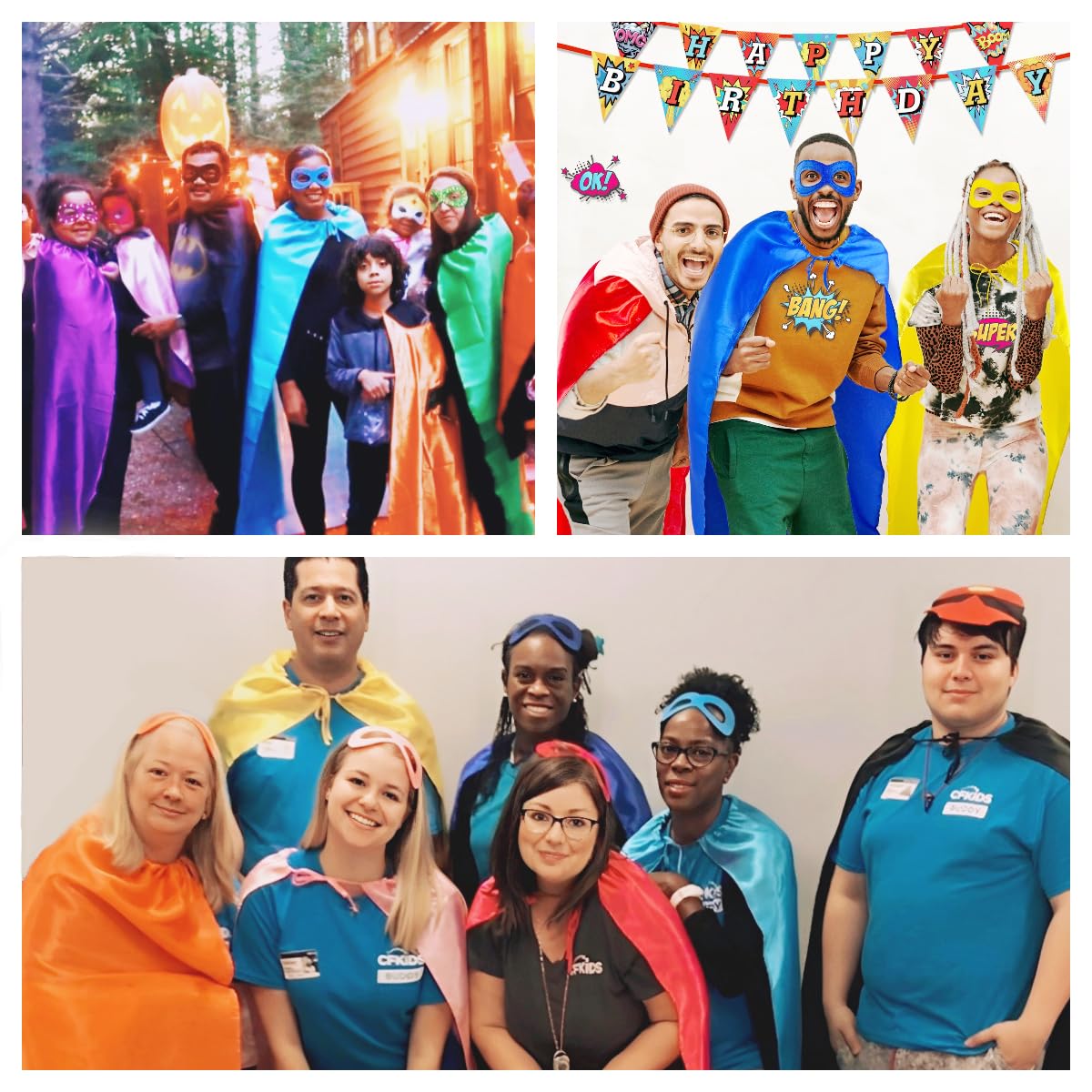 • Bulk Capes for Superhero Parties: Bulk superhero capes and masks for adults, perfect for Halloween Group Costumes, Superhero Birthday Parties, Superhero 5K Run, Teenager School Superhero Day, Company Team-Building, Family Day, Photo Booth Prop, Giveaways, Parade, Outdoor Playtime; Superhero cape is a fantastic addition to any event and festive