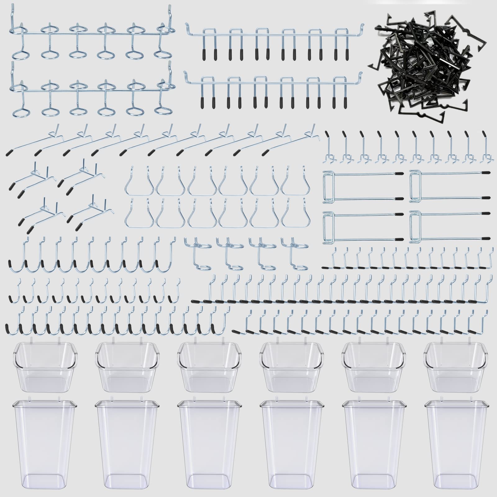 Daanxw 248PCS Pegboard Accessories Organizer Kit,1/8 and 1/4 inch Pegboard Hooks Assortment, Pegboard Bins, Metal Hooks for Hanging Storage (Transparent)
