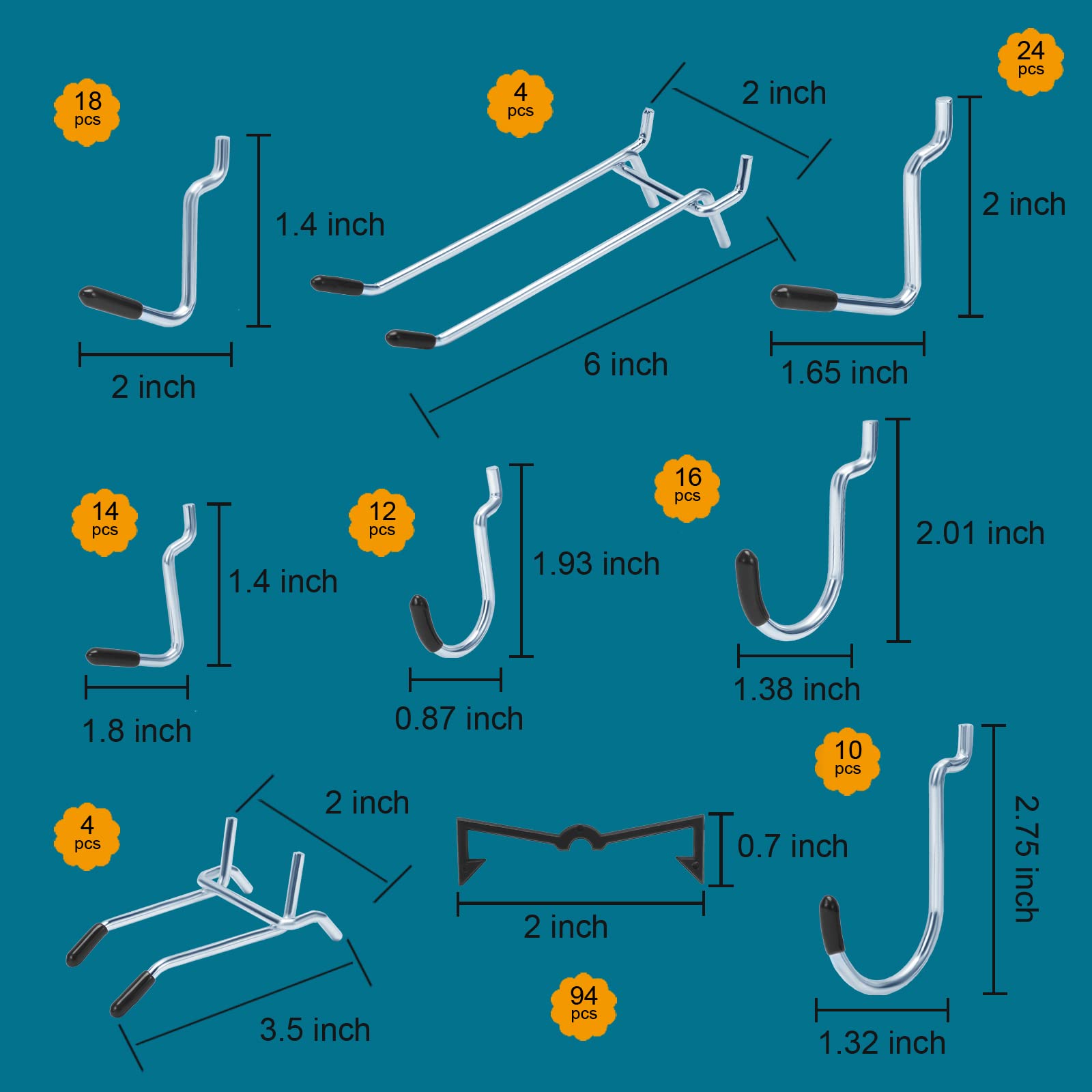 • Universal Fit - Our Pegboard Accessories have an 0.15 inch thick diameter, suitable for 1/8' and 1/4' pegboards with 1' spacing. Each Small hook is equipped with hook locks to help secure the hook stay on the board without falling out.