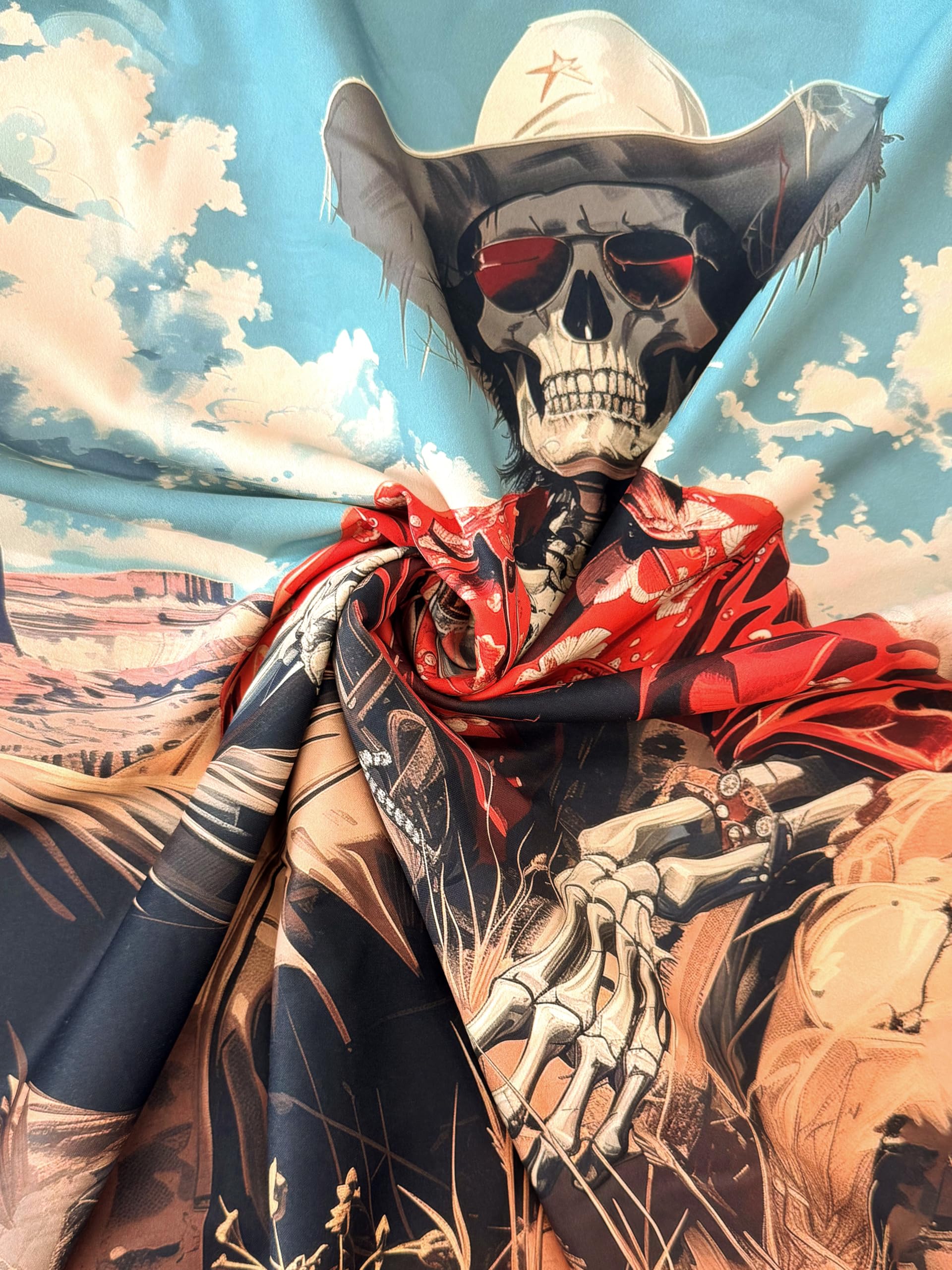 DADDYLOCO Western Skeleton Print Button Down Shirt, Short Sleeve, Regular Fit, Mint Green