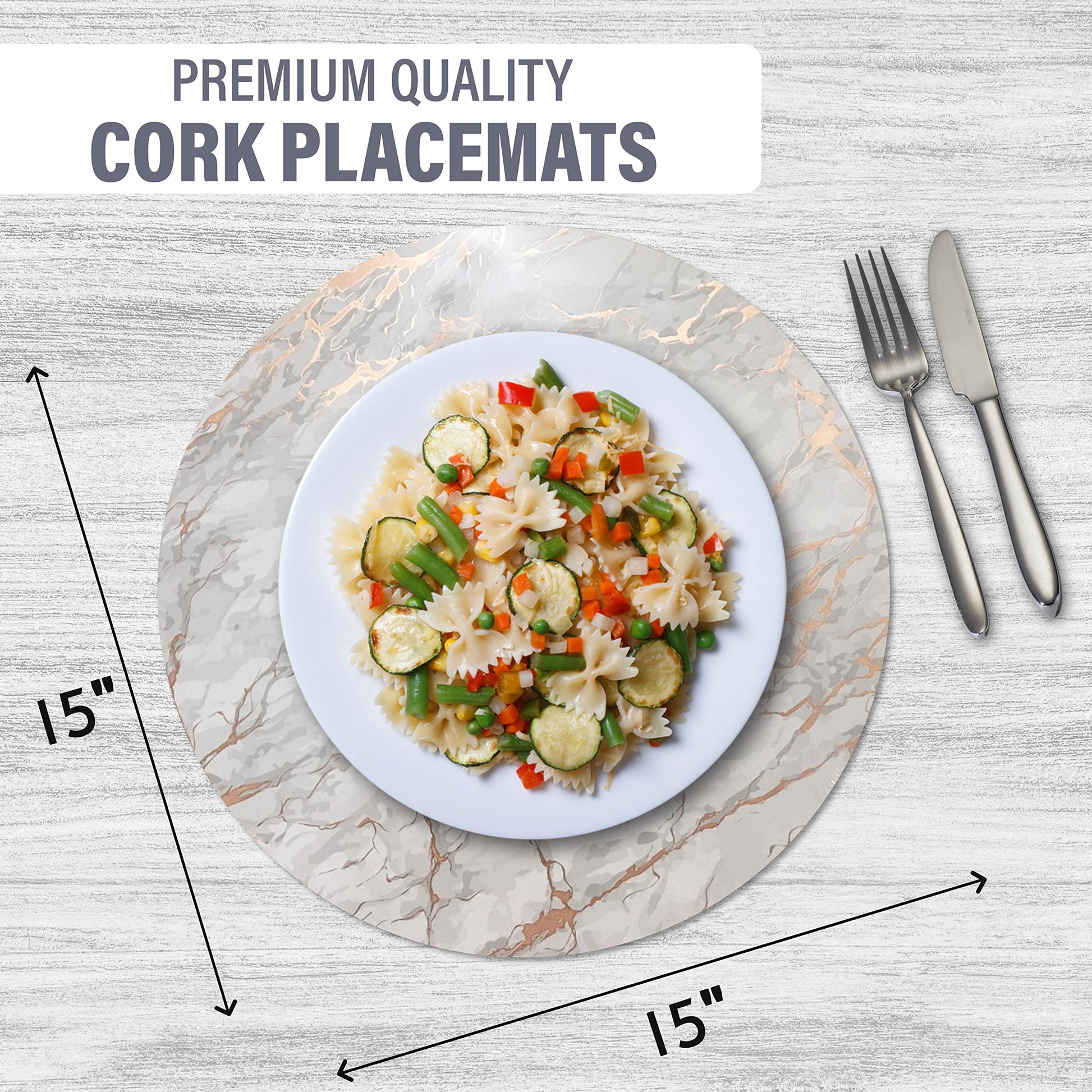 Dainty Home Marble Cork Place Mats Round Rose Gold 15"x15" Set of 2 Washable Placemats Heat Resistant Placemats Non Slip Table Placemats