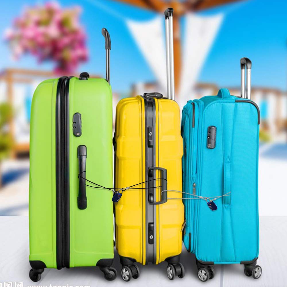 DanziX TSA Approved Lock and 4 Colors Stainless Steel Safety Tether,3-Dial Combination Travel Luggage Lock with Lanyard Security Cable for Protect Your Different Sizes of Suitcase,Baggage-Deep Blue
