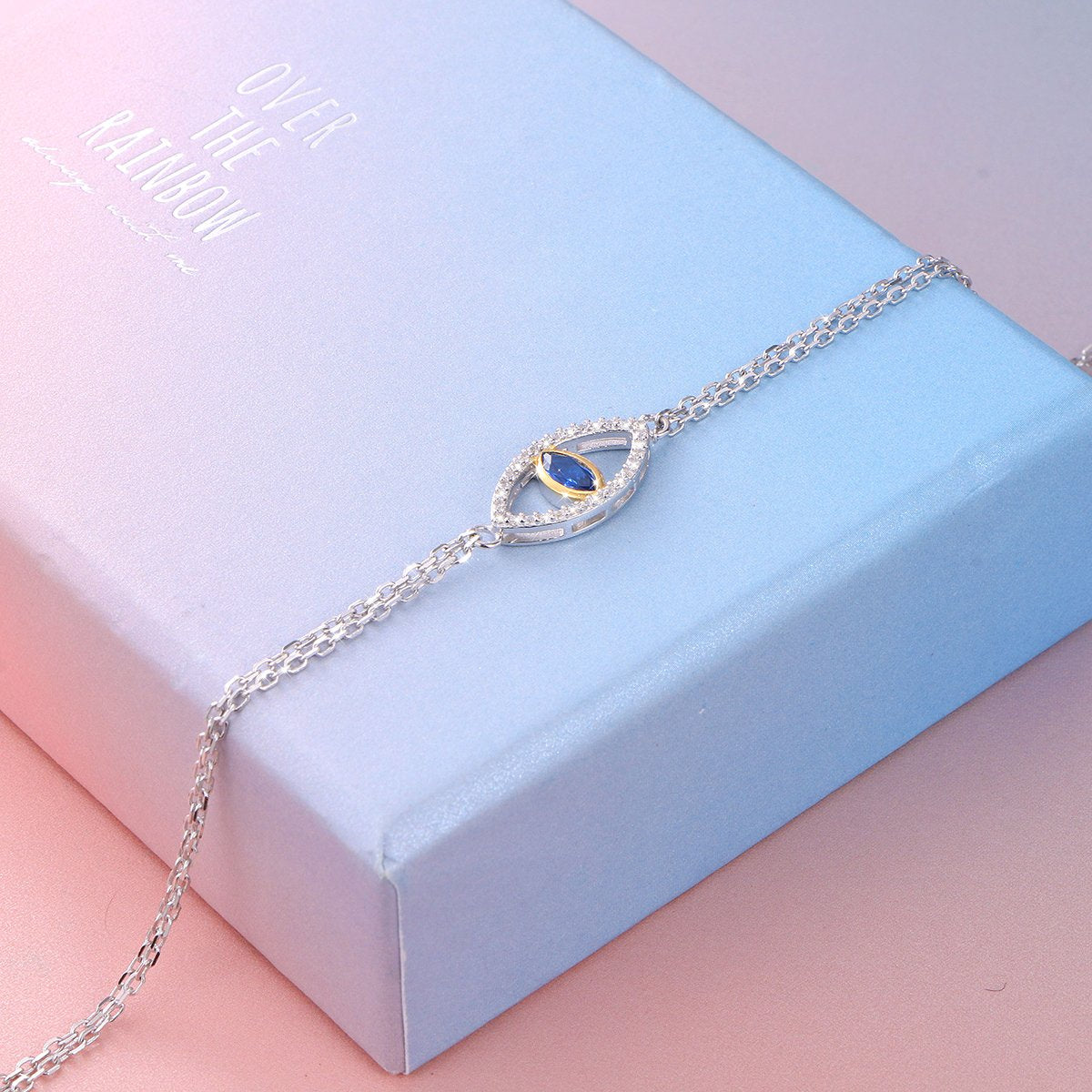 • Two Tone 925 Sterling Silver Jewelry Evil Eye Bracelet For Women