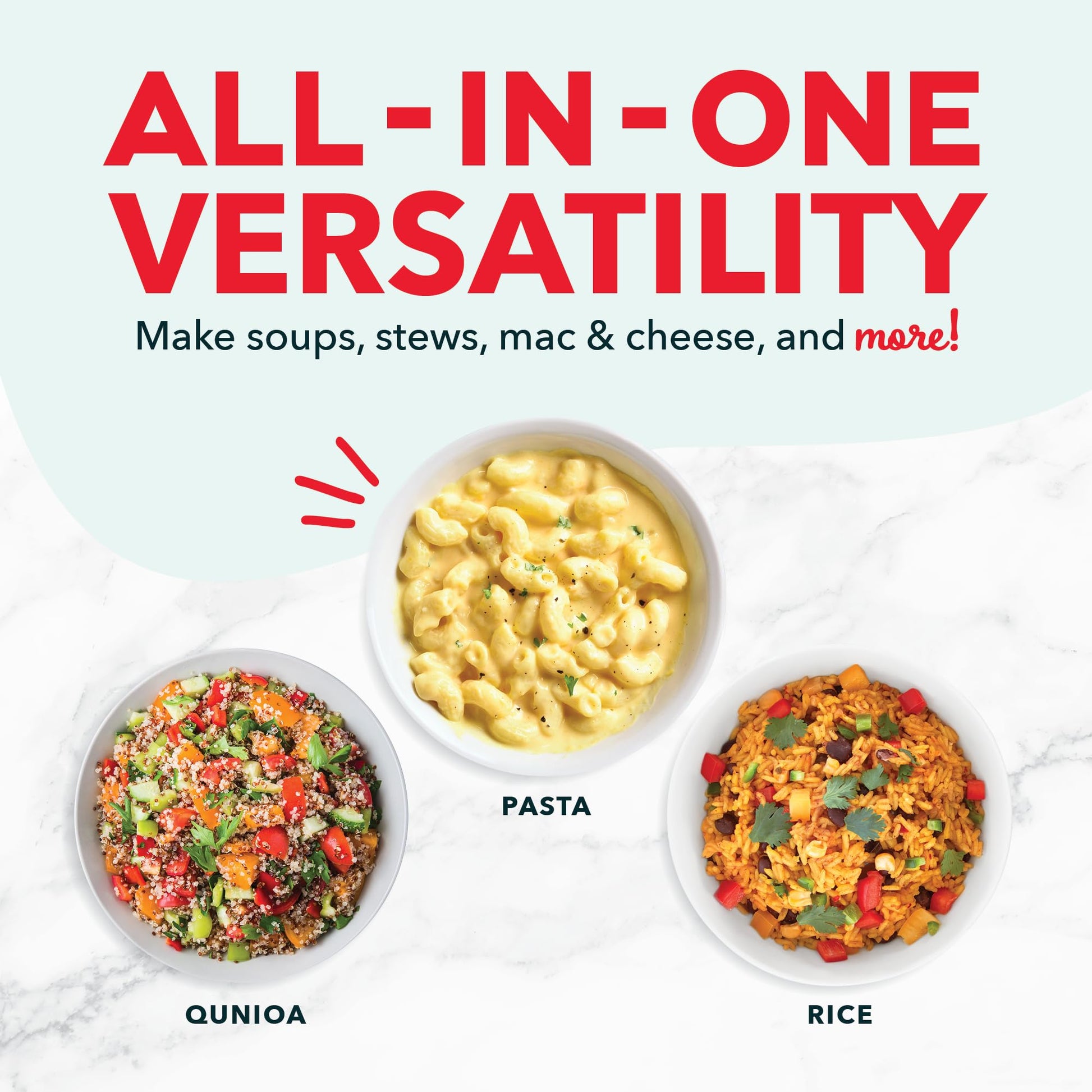 • QUICK plus EASY: Set it and forget it. Prep time is minutes (simply add water and your uncooked rice, pasta, or veggies), and press the cook button. Your steamed meal (or side) is ready in less than 20 minutes, with less clean up.
