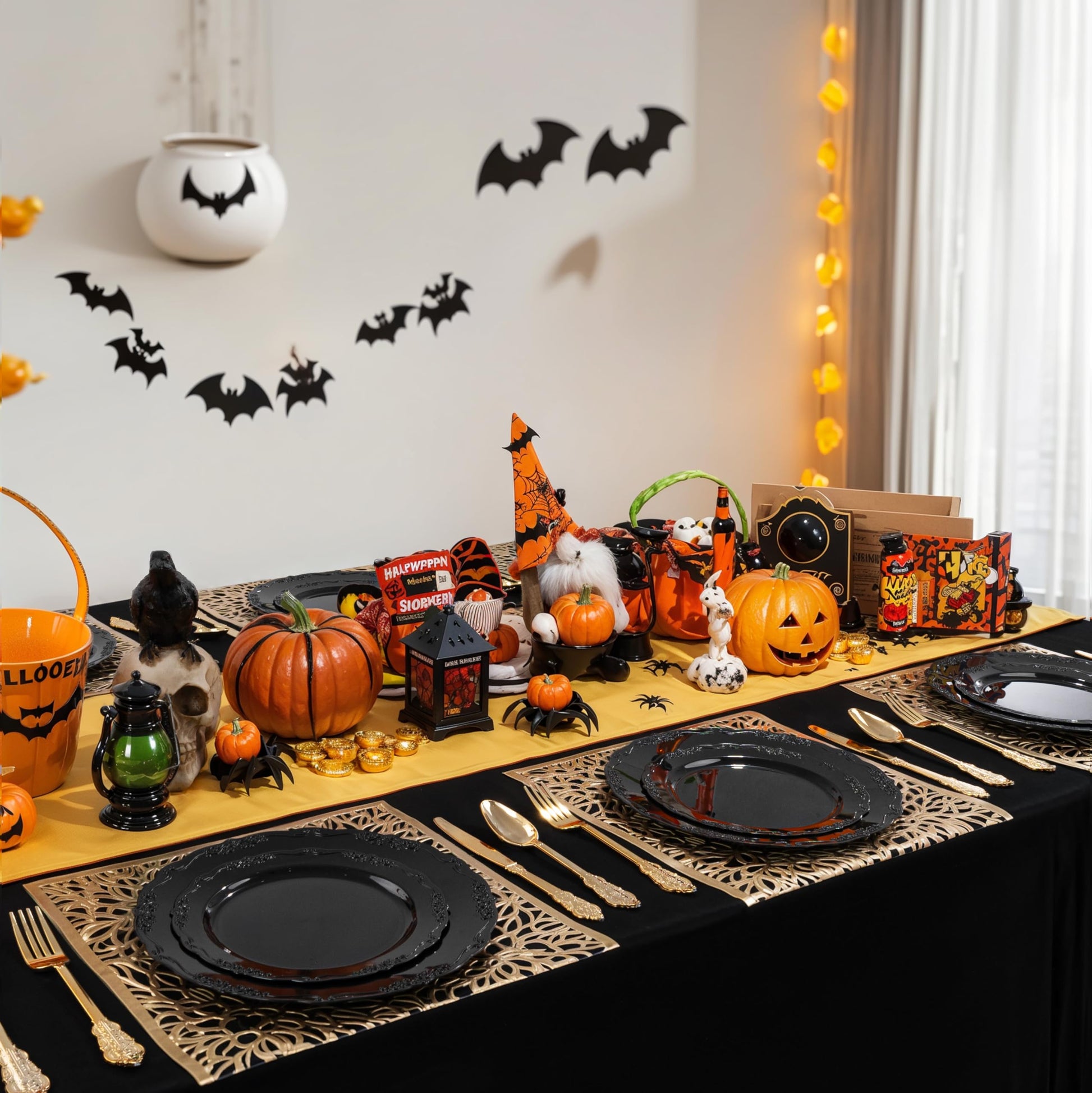 DaYammi 60PCS Black Plastic Plates, Heavy Duty Black Disposable Plates Premium 7.5 inch Dessert Cake Salad Appetizer Plates Hard Plastic Plates Disposable for Halloween Party
