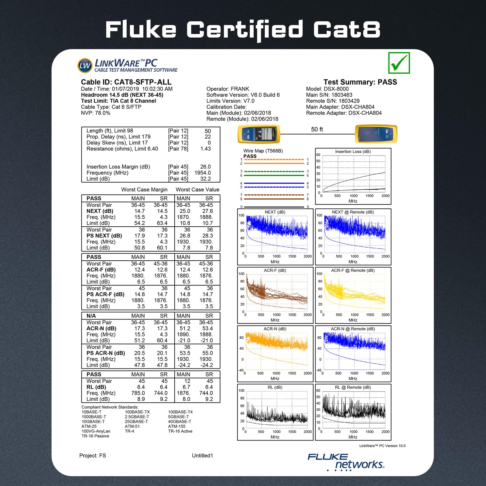 • F/FTP & Hyper Speed: Cat8 Ethernet cable made of 4 shielded foiled twisted pairs and single strand OFC wires (26AWG); supports bandwidth up to 2000 MHz and data transmission speeds up to 40 Gbps; reduces signal interference; ideal for streaming HD videos, gaming, and internet surfing at hyper speed