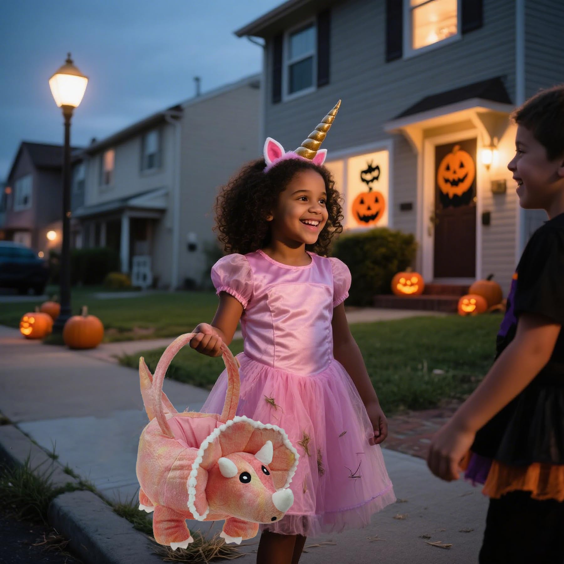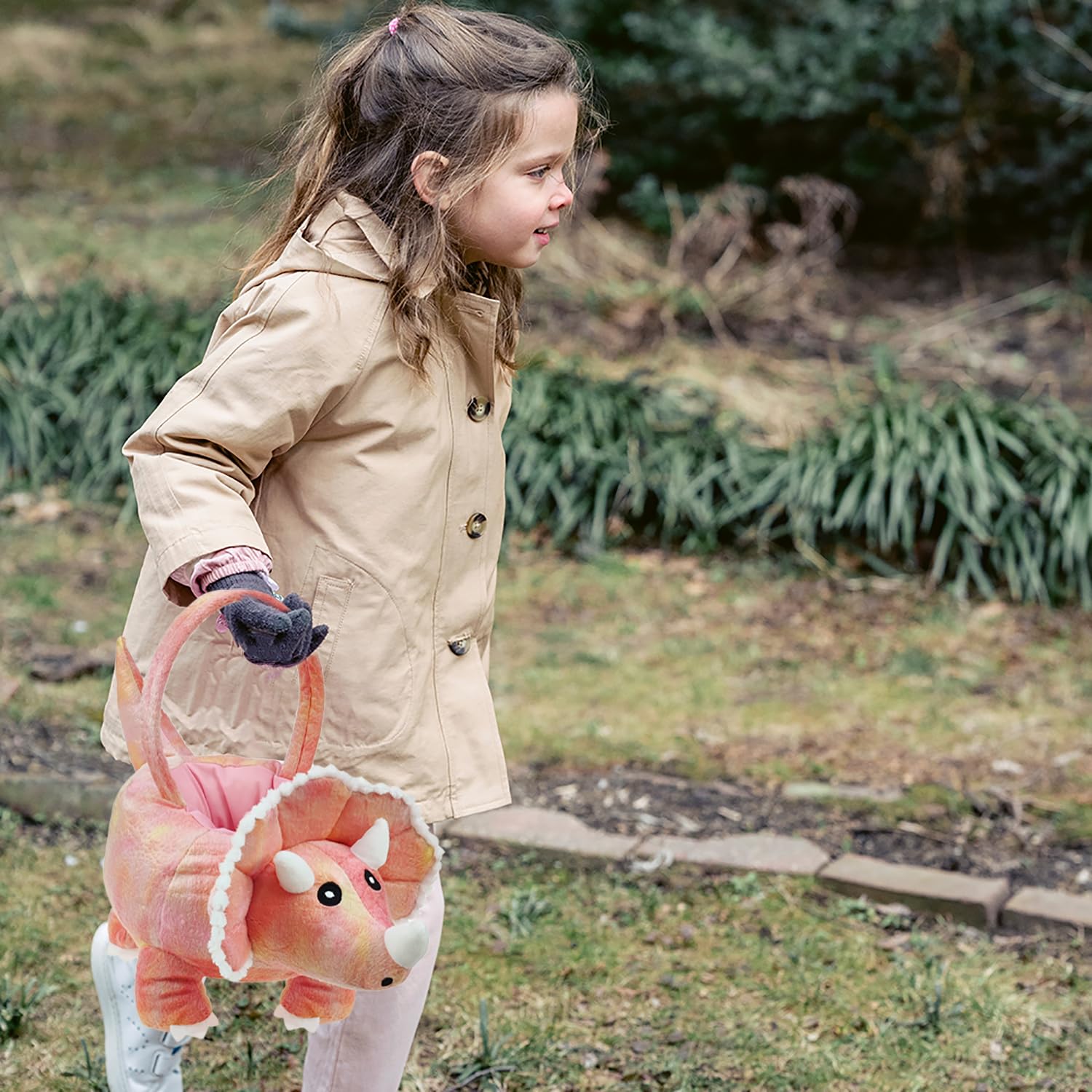 DearSun 3D Triceratops Plush Basket Halloween Trick or Treat Baskets, Cute Candy Bucket for Kids Gift Party Decoration, Pink