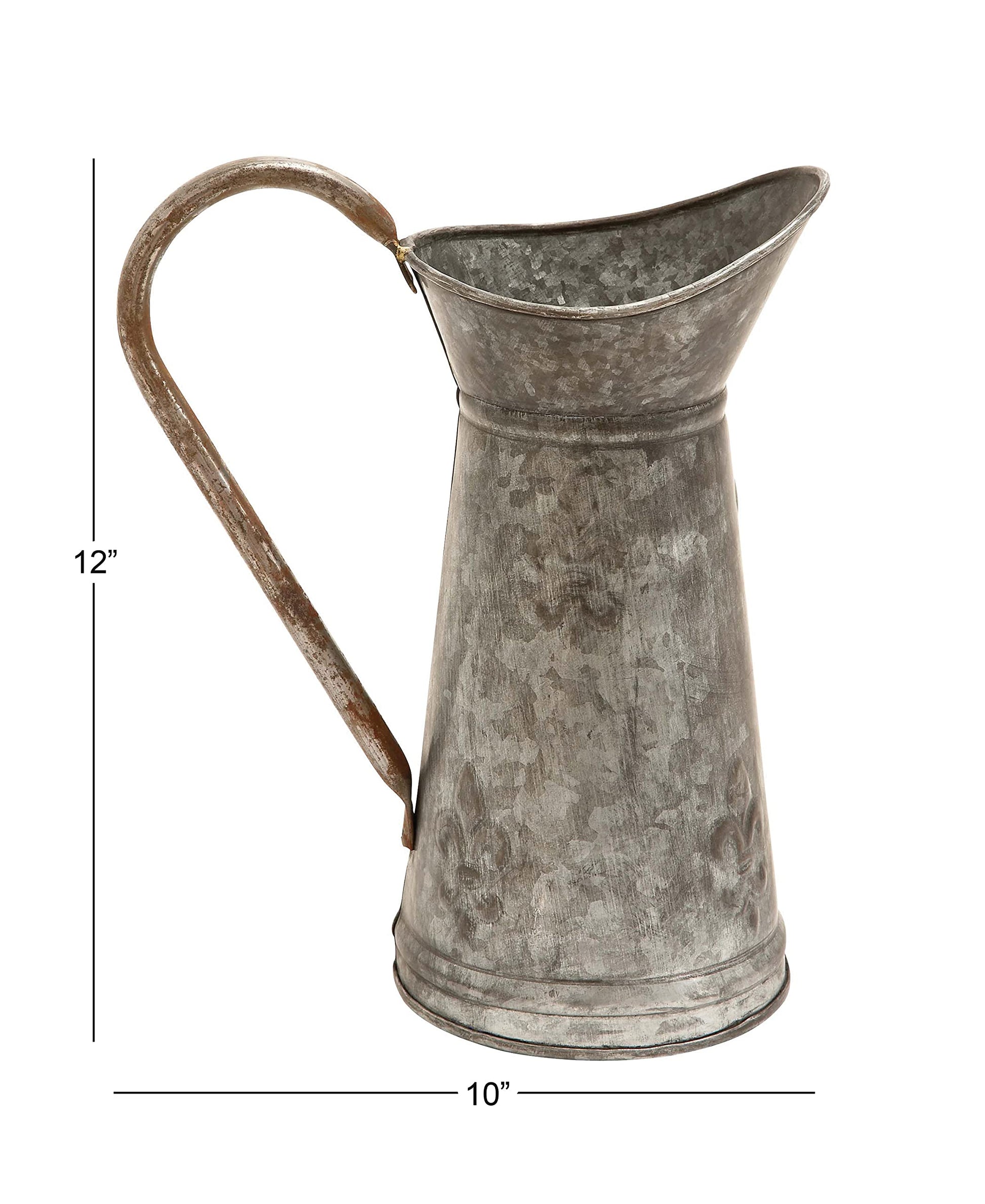 Details: A perfect addition to your gardening set, this metal galvanized watering jug is crafted to perfection. This tall watering jug is carefully designed from high quality metal to ensure lasting functionality with minimum care. Galvanized finish on the metal watering jug imparts reliable usage as it is resistant to easy wear, corrosion and other weather induced damage. Flaunting a distressed finish and embossed fleur-de-lis motifs, this watering jug is high on style and visual appeal and is sure to charm a variety of outdoor settings. Styled with a slender, wide handle, this watering jug is reminiscent of rustic elegance and classic designs that is sure to lend a captivating charm. This wonderful gift will be appreciated by your near and dear ones