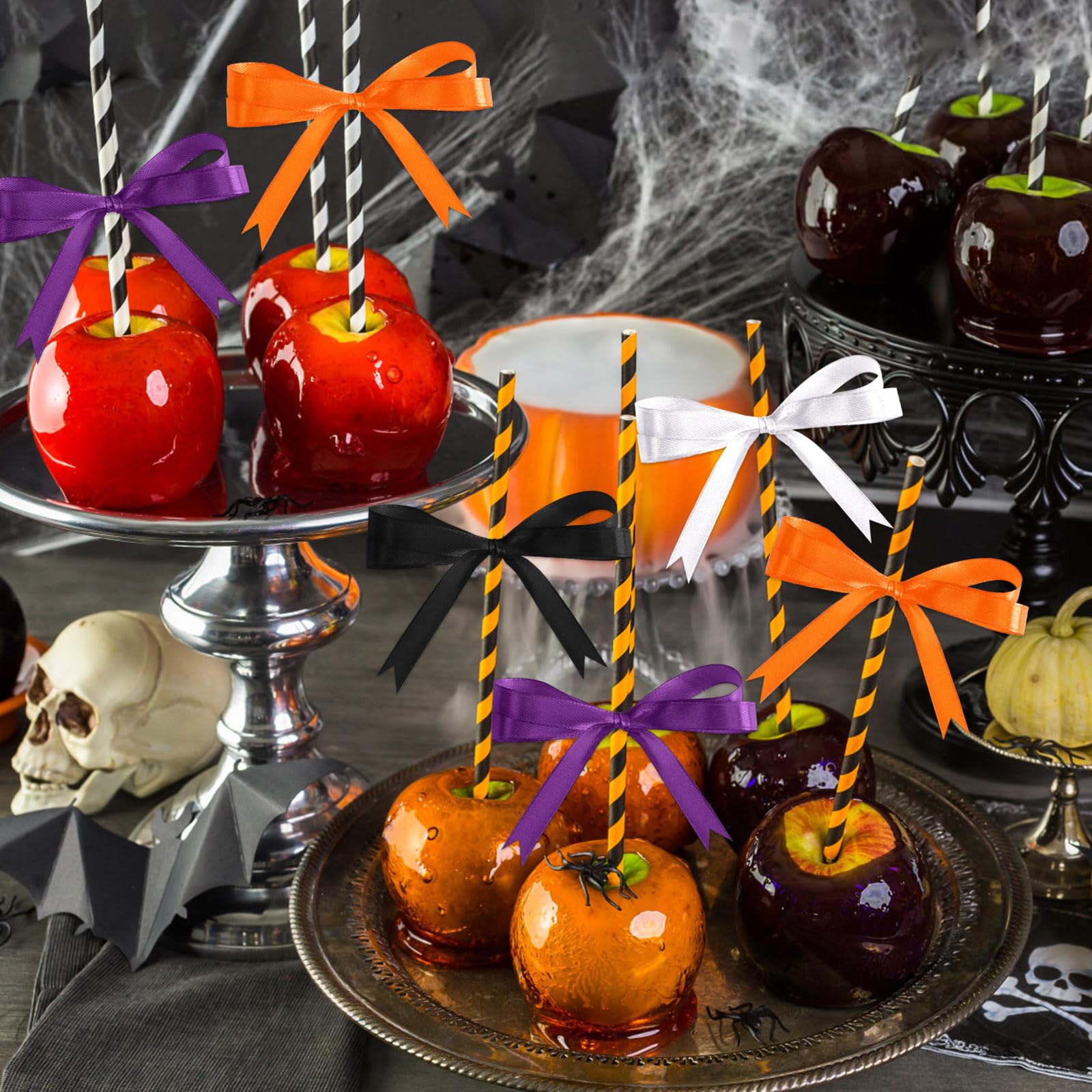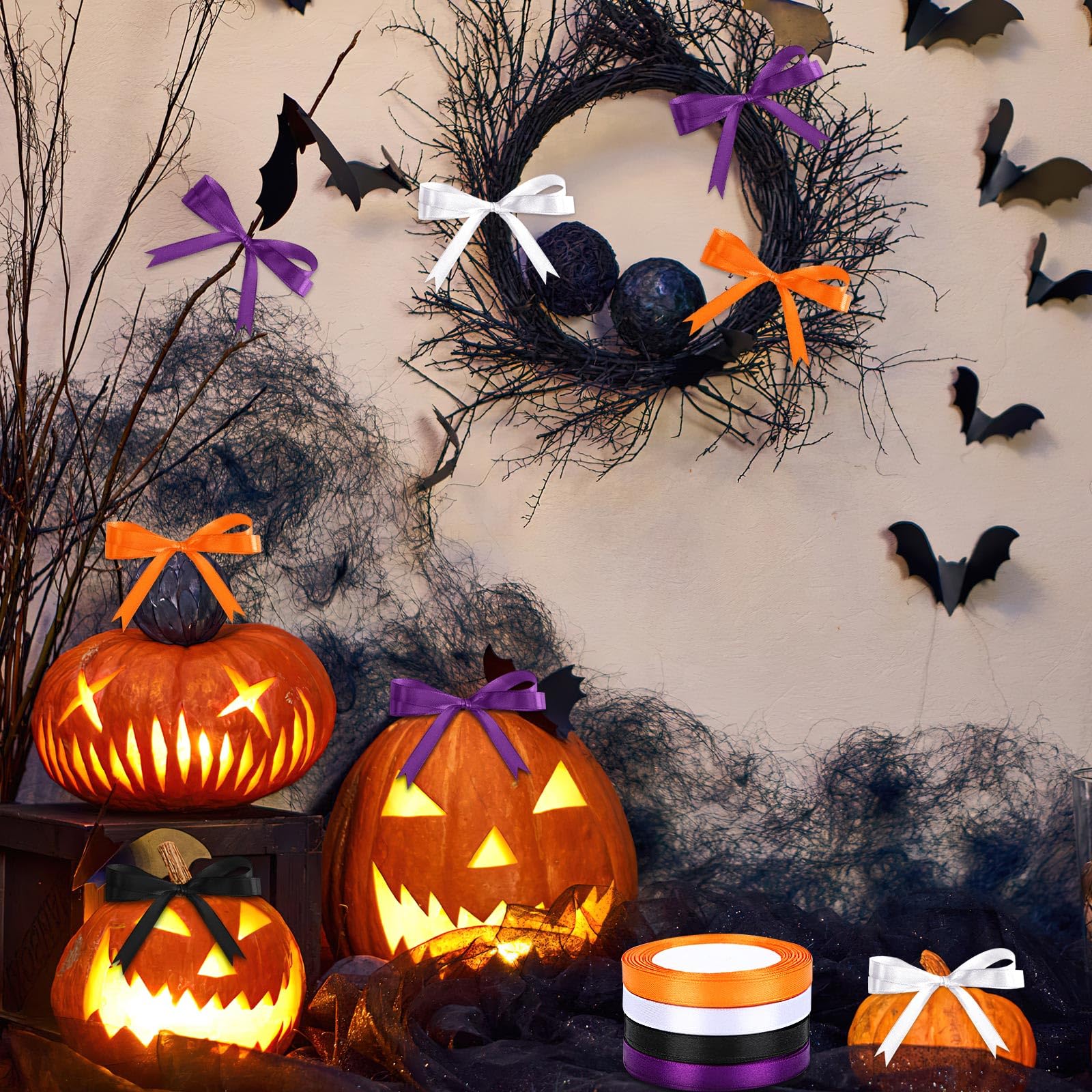 • Package Includes: You will get 4 rolls of Halloween ribbons in 4 colors, orange, purple, black and white, each color has 25 yards, a total of 100 yards. With complete colors and enough length, the orange black ribbon is suitable for your various Halloween party decorations