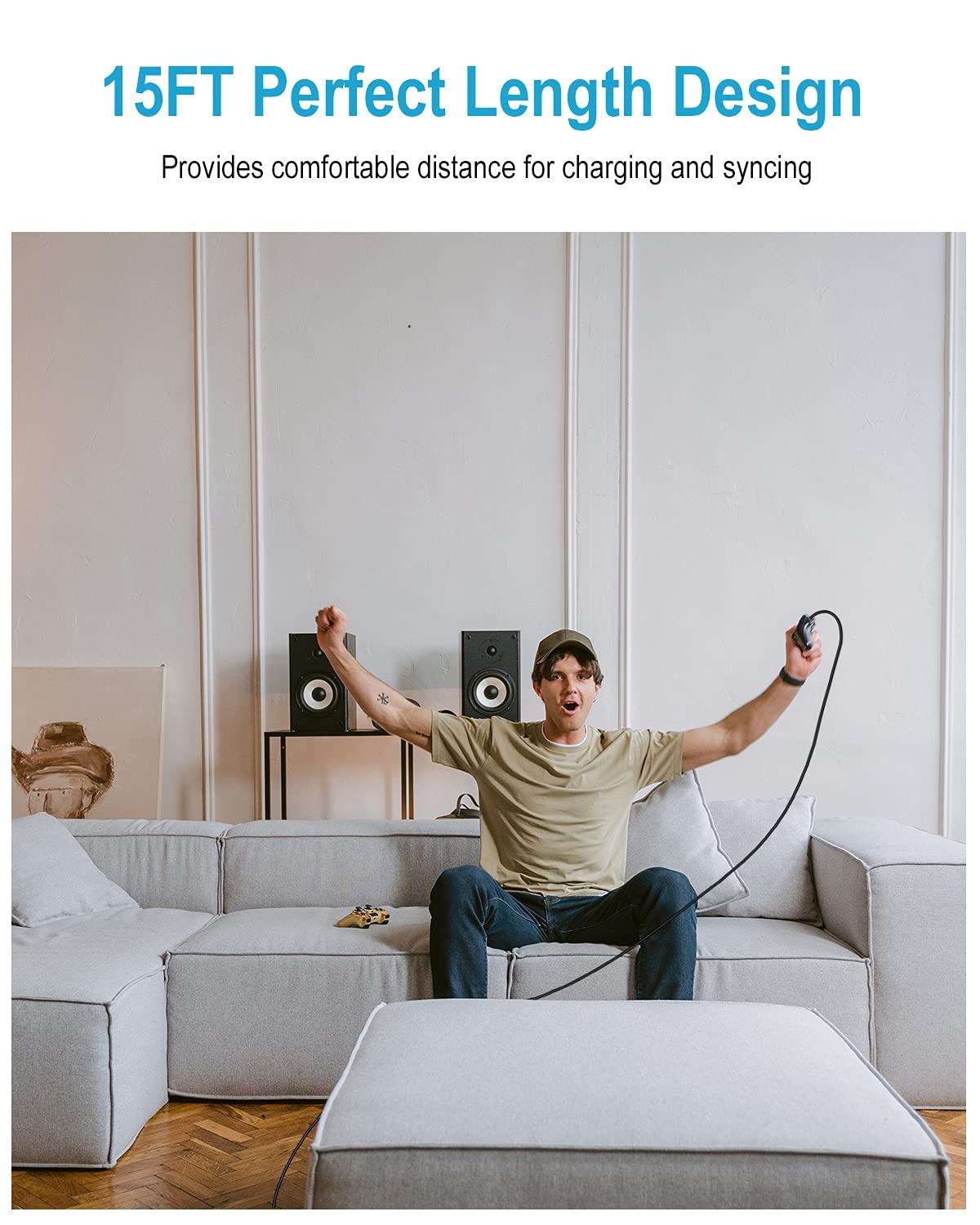 • What You Get: 1Pack 15ft Micro USB to USB-A 2.0 cables, Perfect for using with hard-to-reach USB ports and out-of-sight wall chargers - For bed, sofa, desk or car charger