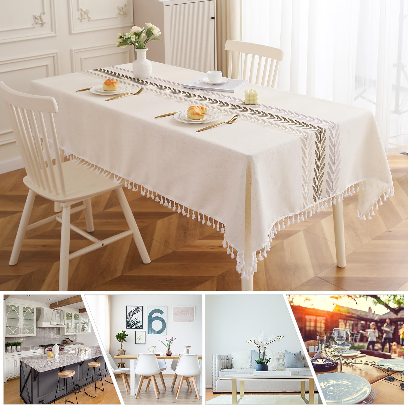 • 【Multipurpose and Occasion】 Our farmhosue design table cloth with classic embroidery, ends with cute tassels, can be used as indoor tablecloths for the kitchen, dining room, living room, coffee table cover, and banquet. Or outdoor tablecloths for weddings, birthday parties, patios, picnics, buffets, camping, celebrations and barbecues