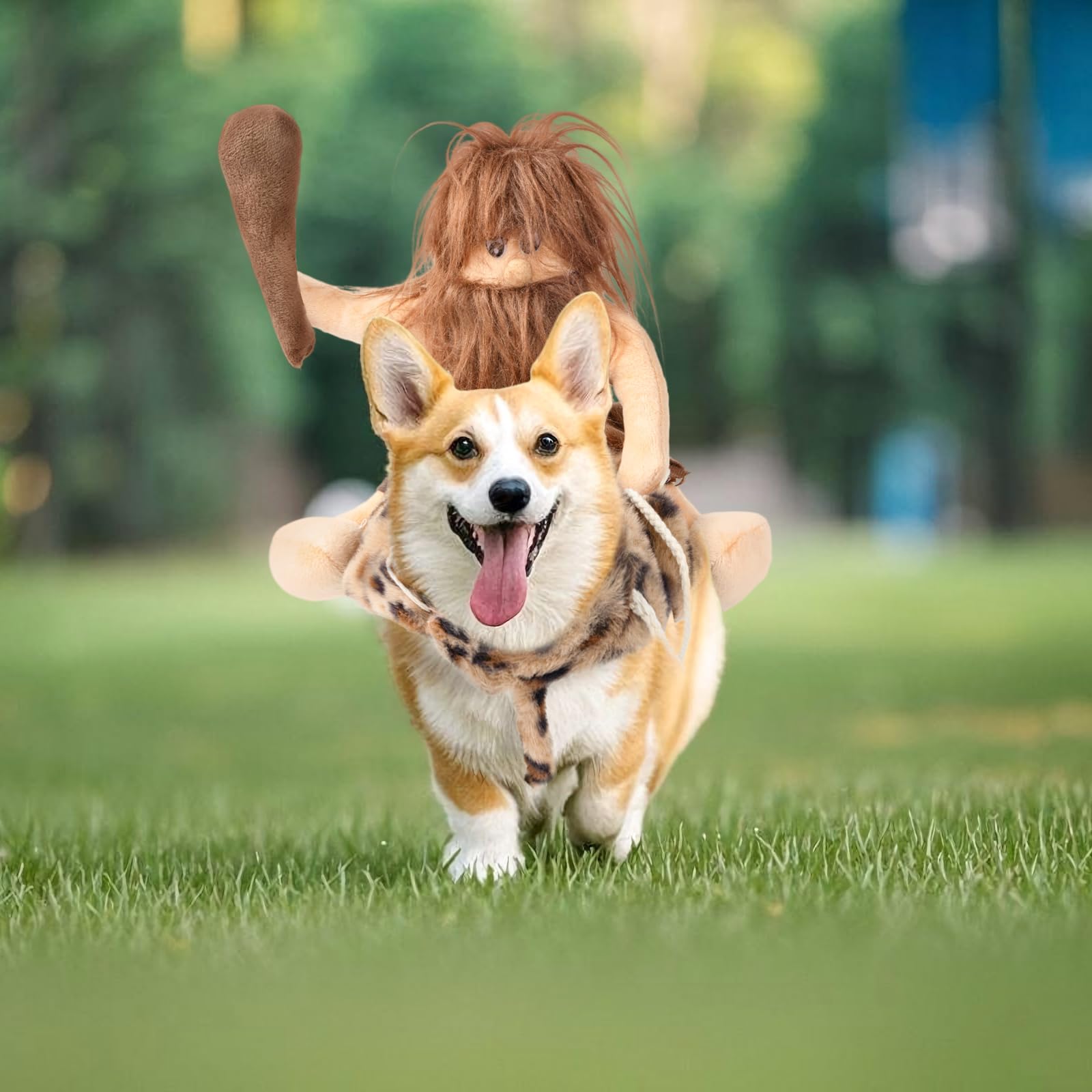 DELIFUR Dog Halloween Costume Funny Dog Cowboy Riding Costume Pet Costume Cat Suit Cowboy Rider Style for Small Medium Large Dogs (Primitive Man, X-Large)