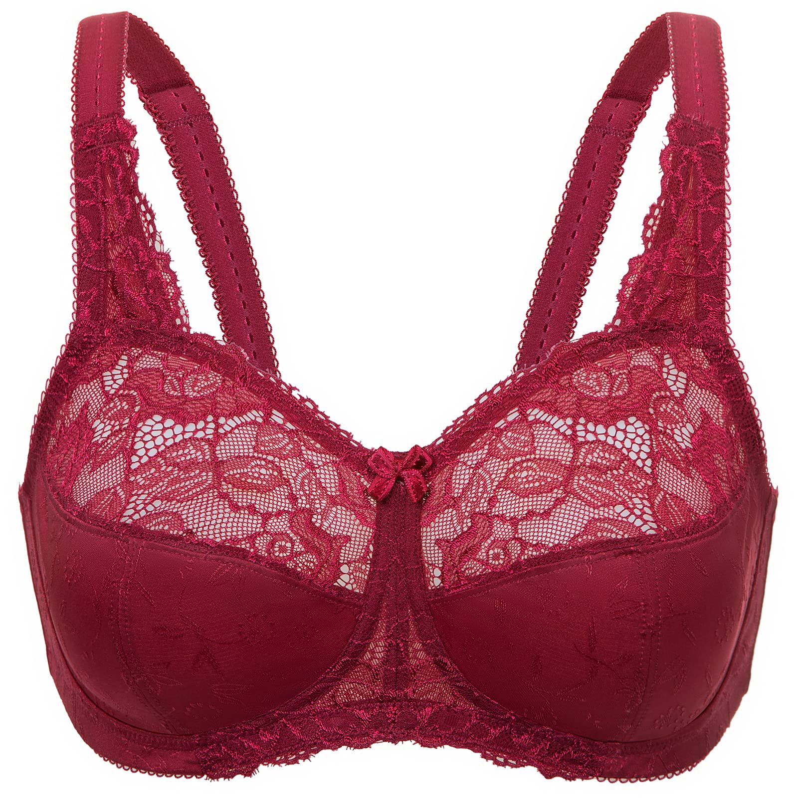 DELIMIRA Women's Lace Wireless Plus Size Bra Sexy Full Coverage Unlined Bralette Cranberry 36DD
