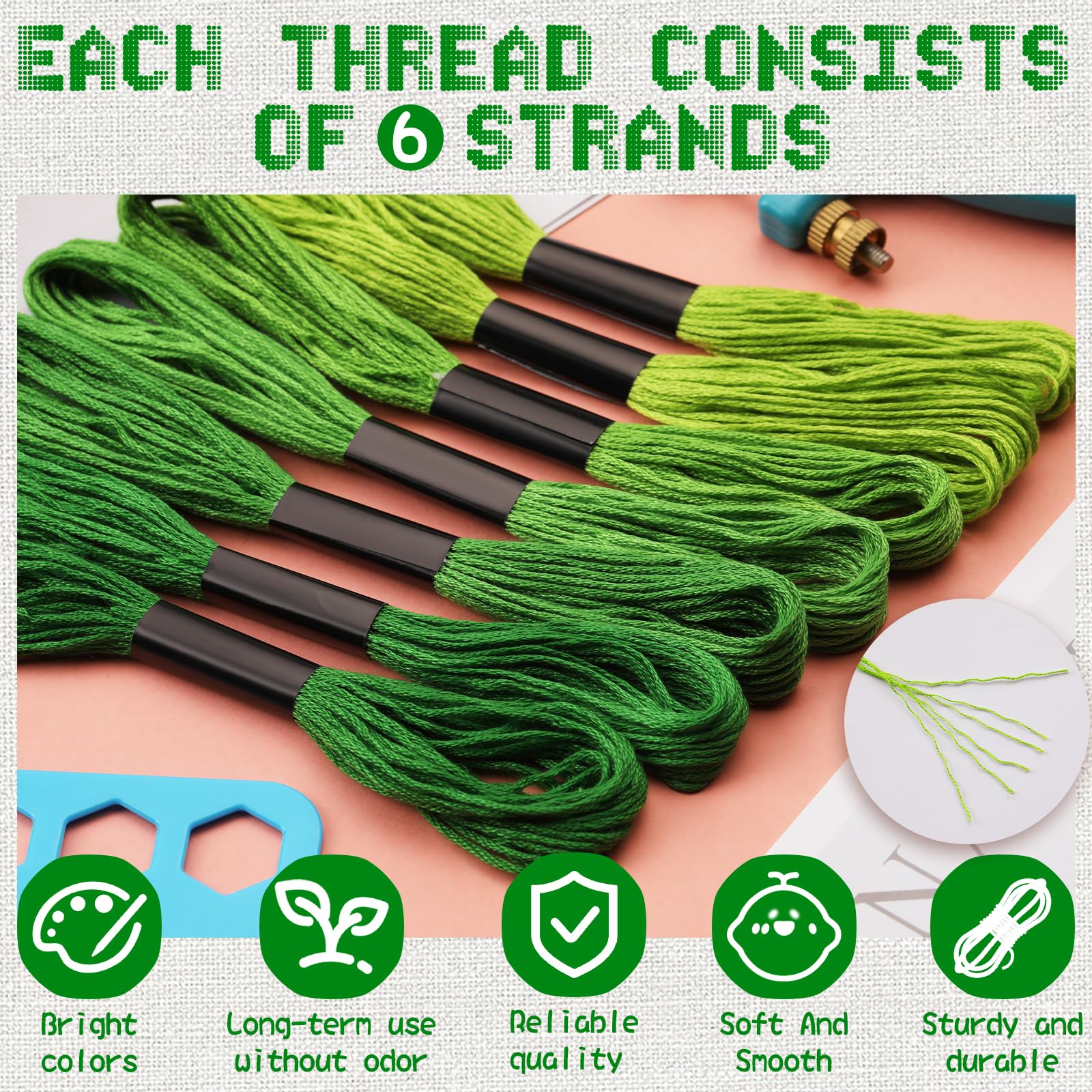 • Package Included: You will get 25 skeins green series cross floss stitch thread,1plastic floss bobbins
